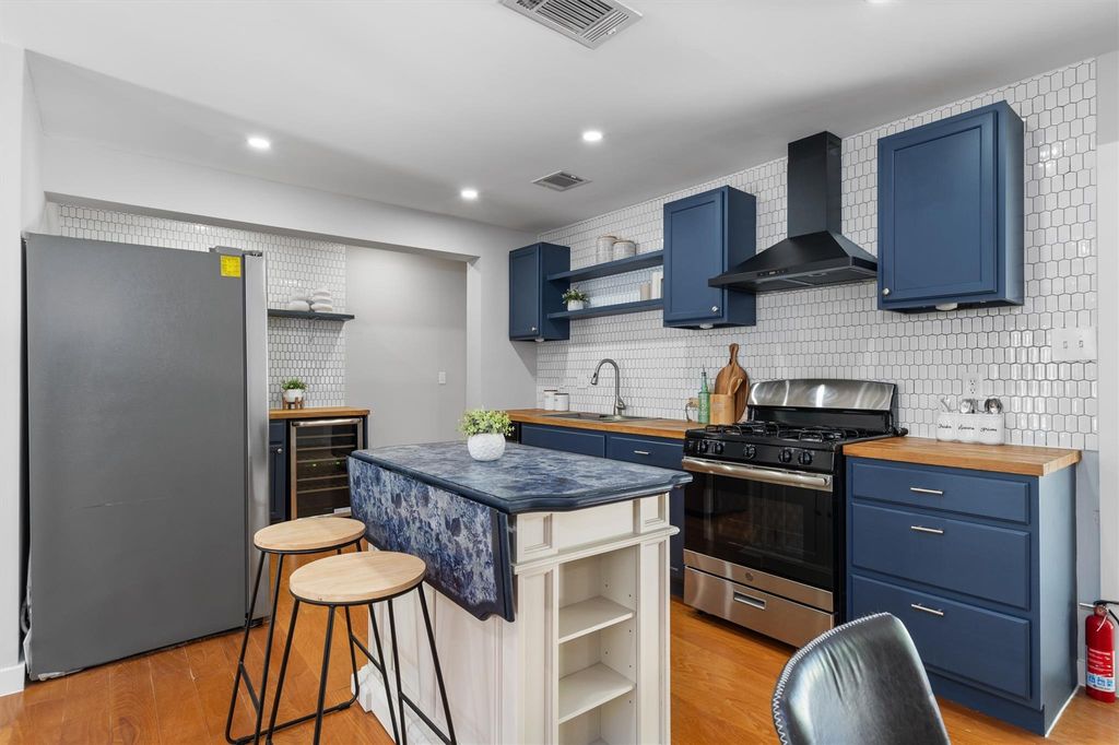 APPLIANCES | Dishwasher, Disposal, Exhaust Fan, Free-Standing Range, Gas Range, Stainless Steel Appliance(s), Water Heater, Wine Refrigerator |
