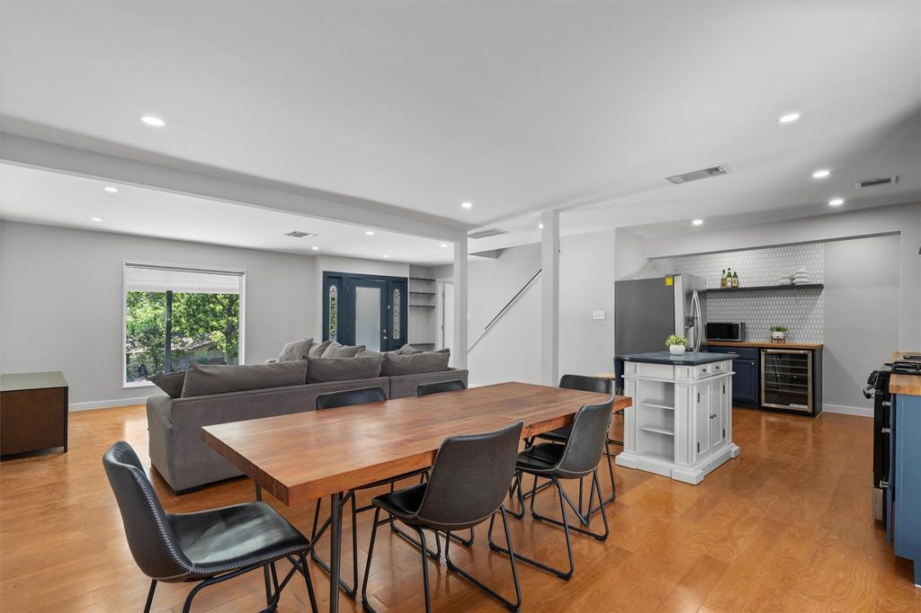 Southeast Austin Charmer within four miles of Downtown Austin. Three incredible outdoor living options, including a massive covered balcony off the back. Four bedrooms, three total bathrooms, plus an addition with half bath and extra storage. Situated on high ground on a large .2 acre lot, the open floor plan seamlessly flows together, featuring an open kitchen with a wine fridge. A shaded front patio adds a touch of neighborly charm. Master bedroom is downstairs, with three more bedrooms up. Located about two miles from all the SoCo shops, 3400 Santa Fe is your ideal home to enjoy the Austin lifestyle without compromising on elbow room and charm. It's easy to see - come check it out today!
