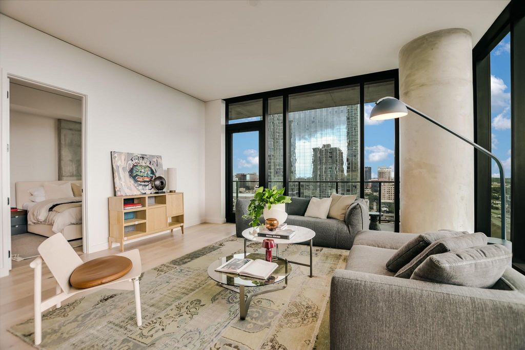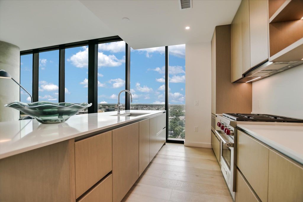 Be the first to live at The Modern Austin Residences in this spacious 3 bed, 3 bath east-facing residence on the 19th floor. Floor-to-ceiling windows and a private balcony fill the home with natural light and offer expansive views of the city skyline. The kitchen is appointed with light quartz countertops, a Sub-Zero 36" refrigerator, and sleek modern finishes throughout. All three bathrooms feature matching light quartz surfaces. Additional highlights include a washer and dryer, hardwood flooring, and two reserved parking spaces. Residents enjoy over 19,000 sq ft of curated amenities across three levels, including a 25-meter pool and spa, fitness center and yoga studio, indoor and outdoor lounges, dog park and wash station, business center, sky lounge with catering kitchen, and 24/7 concierge service. Perfectly situated in the heart of the Rainey Street District, The Modern offers walkable access to Austin's best restaurants, nightlife, and the hike-and-bike trail along Lady Bird Lake.