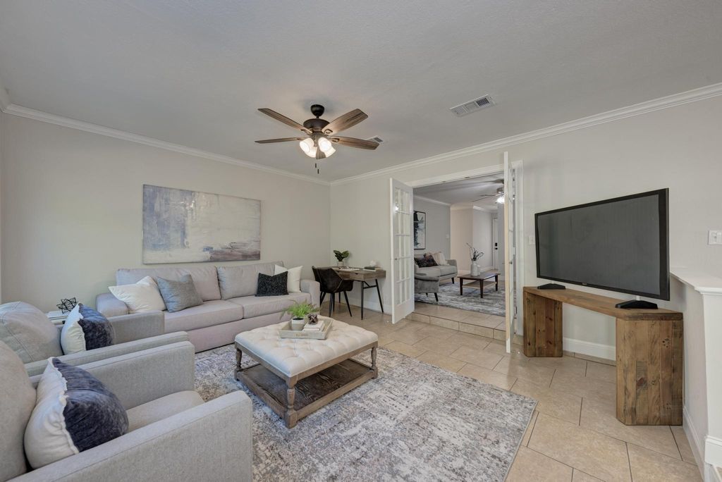 Beautifully updated single story home in South Austin. This home has great flow with kitchen open to both the dining area and one of two living areas. Updated kitchen features a breakfast bar, granite counters, stainless appliances, and subway tiled backsplash. French doors lead to an addition living space for entertaining and relaxing. Tile floors throughout the main living areas, new carpet in bedrooms. Tons of natural light fill every room. The large primary suite has a walk-in closet, sliding glass doors to a private side patio- the perfect spot for morning coffee, and updated bathroom with double vanity, quartz counters, and floor to ceiling tiled shower. Two additional bedrooms and a full bath complete the interior. Living, dining, kitchen and both bathrooms have updated Low E glass windows. Front door and garage door are new. Outdoors you will find a fully fenced backyard with mature trees and a stone paved patio. Great location just blocks from Stephenson Nature Preserve and minutes from HEB, Costco, area restaurants and entertainment.