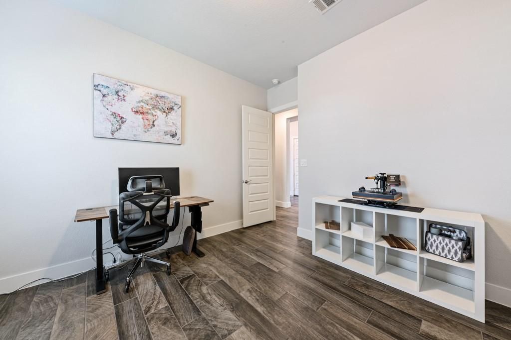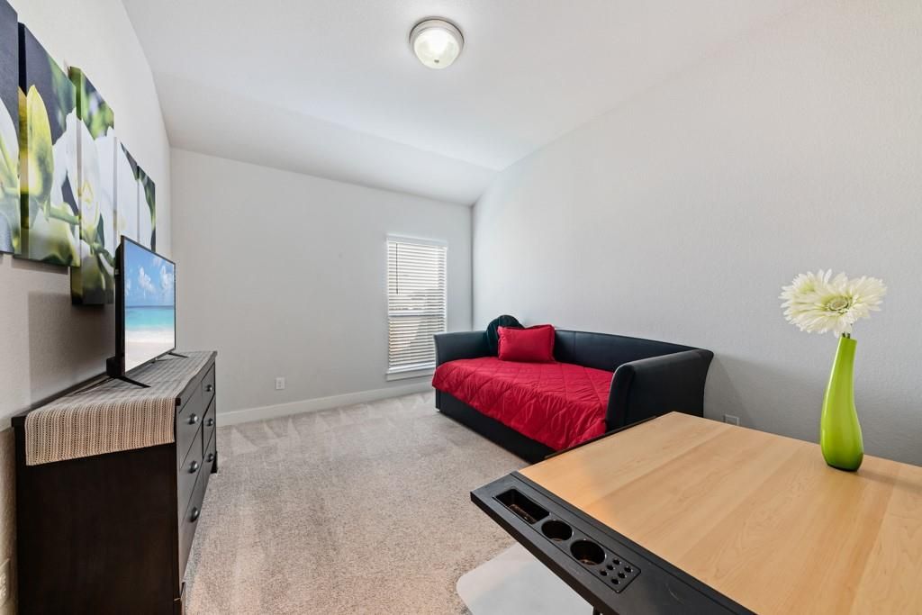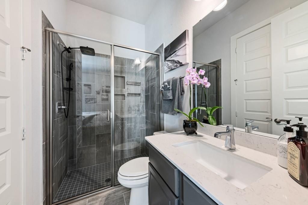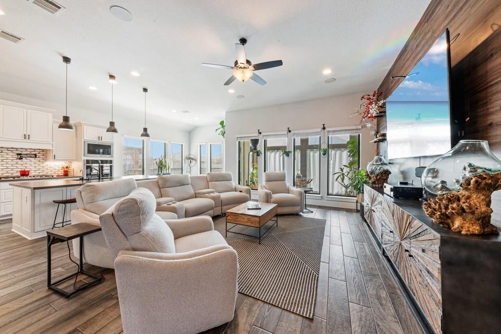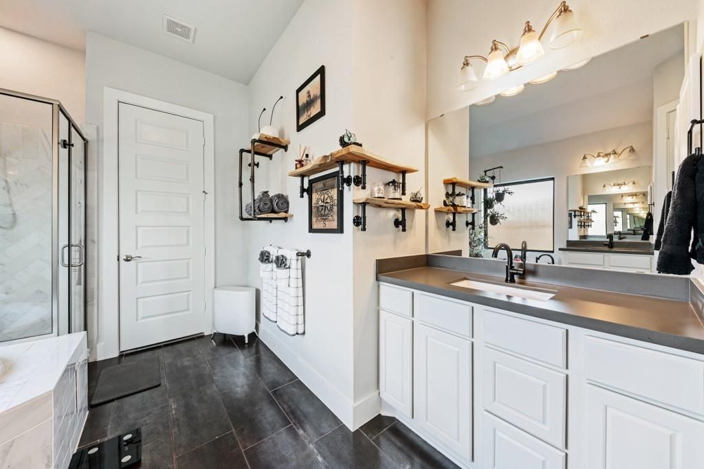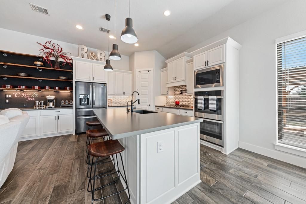 WOW! Luxury, space, and style come together in this stunning home, tucked away on a quiet cul-de-sac in ShadowGlen. Beautiful landscaping and strong curb appeal set the tone"”but wait until you step inside! With 2,732 square feet, this well-designed home offers 4 bedrooms, 3 full bathrooms, an office, a media room, and an expansive living room ideal for everyday living and entertaining. The grand entry welcomes you with tall ceilings, 8-ft doors, gorgeous "woodgrain" tile flooring, wood shelving, and striking wood-look tray ceiling accents, details that continue throughout the home. An office features glass doors, a stylish brick-look accent wall, and floating shelves. Two spacious bedrooms with walk-in closets share a full bath, while a private guest suite enjoys its own en-suite bathroom. A flexible bonus room is ready to become any room that fits your lifestyle! The chef's kitchen is the heart of the home, showcasing white cabinetry, a huge island with storage, gray countertops, gas cooking with pot filler, double ovens, and a walk-in pantry. Extra space for a coffee or wine bar! The kitchen opens to the luxurious living room. Walls of windows flood the space with natural light. The primary suite has a spa-inspired bathroom featuring a jetted tub, rain shower, dual vanities, and marble tile. A large walk-in closet includes a functional hidden passage to the laundry room. Additional highlights of the home include an over-sized two-car garage plumbed for a sink and prepped for EV, surround sound, security system, and a full water filtration system. Outdoor living shines with an enclosed Sun Room, a massive backyard, gazebo on a concrete slab, raised planting beds, and a heated cowboy pool. Solar panels, gutters, and a full sprinkler system complete the package. ShadowGlen offers resort-style amenities including a water park, fitness center, golf course, trails, sports courts, playgrounds, and clubhouse. Minutes from shopping and dining. An exceptional opportunity!