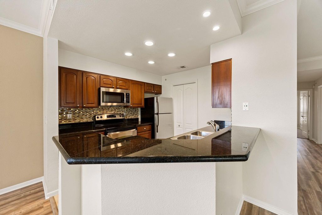 Perched above the rolling hills, this stunning 2-bedroom, 2-bath condo offers sweeping views and an unbeatable Austin location. Inside, enjoy modern updates throughout, including newly installed luxury vinyl plank flooring and carpet, granite countertops, and a full appliance package with refrigerator, washer, and dryer"”all conveying with the home. The HVAC and water heater have both been replaced within the last few years, ensuring comfort and peace of mind. A beautiful wrap-around balcony provides privacy and an ideal space for relaxing or entertaining while taking in the scenic hill country views. The community recently replaced its metal roof and offers exceptional amenities, including a well-equipped gym and sparkling swimming pool. Perfectly situated near hiking trails, the greenbelt, Lake Austin, and the iconic Pennybacker Bridge, this home blends tranquility and convenience in one exceptional package.