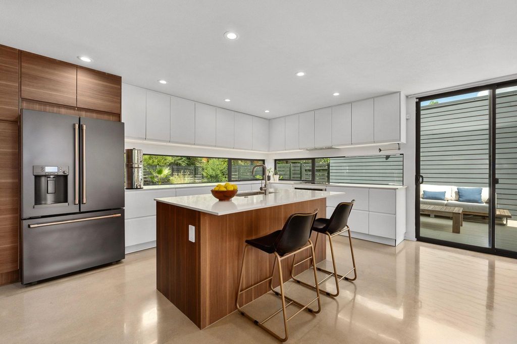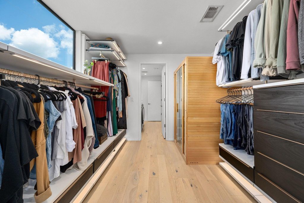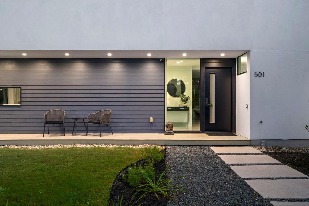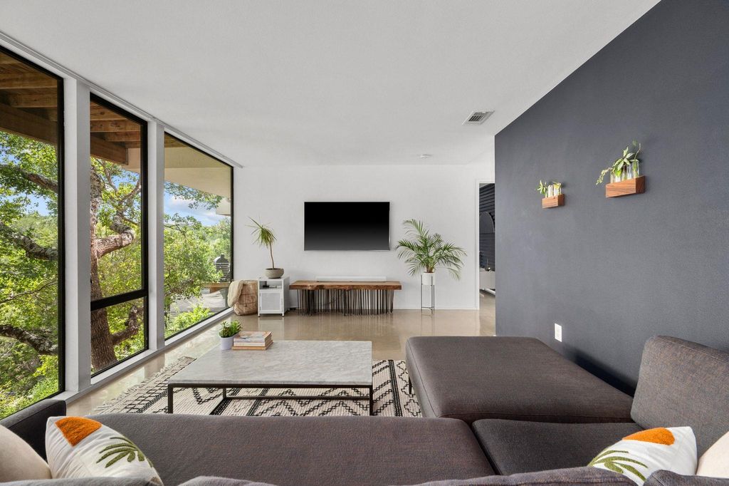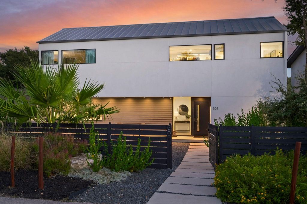 This Scandinavian-inspired home backs right up to the Balcones Preserve, giving you a private, tree-top backdrop that feels a world away from the city. Clean lines, thin-frame aluminum windows, and modern landscaping set the tone from the moment you pull up, while inside, every room is designed to feel bright, open, and connected to nature. The main level is all about easy living, an open layout with diamond-polished concrete floors, floor-to-ceiling glass, and a seamless flow between the kitchen, dining, and living areas. Morning sunrises pour in through the windows, and the views stretch out over the rolling treetops. There's also a main-floor bedroom, perfect for guests, an office, or whatever you need it to be. Upstairs, European white oak floors warm the space and lead you to a flexible loft with access to a 6' cantilevered covered balcony, one of the best spots in the home to take in the preserve views. The primary suite feels like a getaway with its spa-style bath (freestanding soaking tub included) and a large walk-in closet. Two additional bedrooms and another full bathroom round out the upper level, giving everyone their own comfortable space. Outside, a mix of xeriscape and curated landscaping creates a modern, low-maintenance curb appeal. Whether you're sipping coffee on the deck, watching the sunrise through the full-height windows, or enjoying the breeze from the balcony, this home is all about bringing the outdoors in. Located within exemplary Travis ISD and built in 2019, it's the perfect blend of design, function, and everyday comfort, modern, bright, and truly one-of-a-kind.