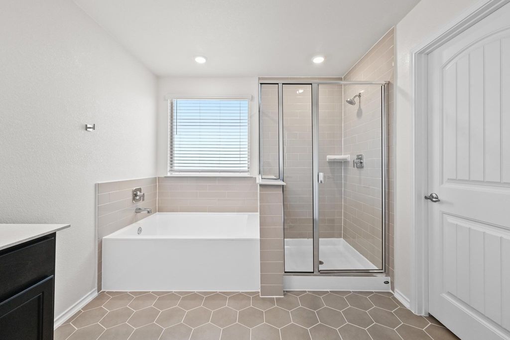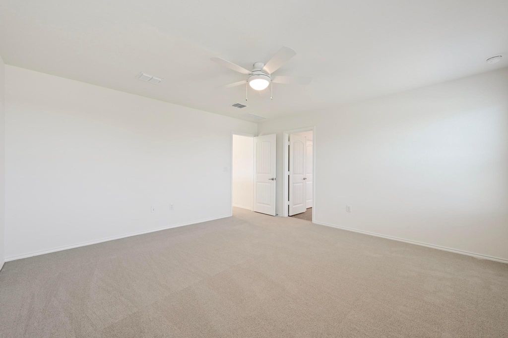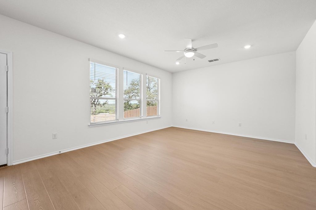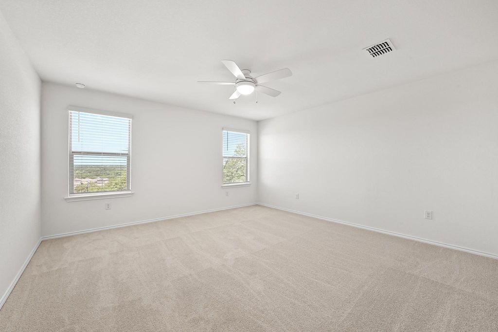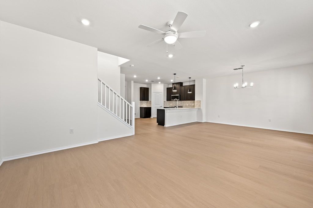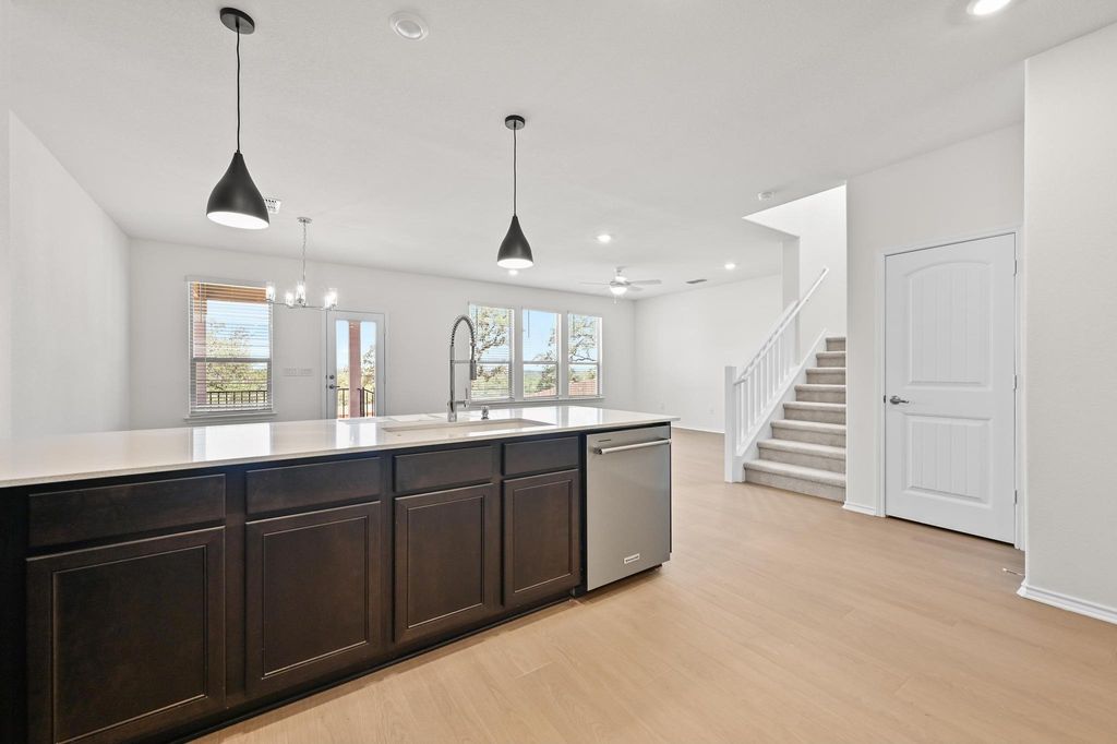 This gorgeous, two-story home showcases an open floor plan with luxury vinyl plank flooring and a spacious great room, which is perfect for entertaining. The kitchen boasts flat-panel upper cabinets, sleek tile backsplash and Silestone countertops in Blanco Maple. Upstairs, a versatile loft awaits. The primary bedroom features plush carpeting, a walk-in closet and connecting bath that offers a relaxing tub and separate walk-in shower with tile surround. Additional highlights include an ecobee3 Lite smart thermostat, electric charging station pre-wiring, cordless blinds and ceiling fans at great room and primary bedroom. Relax outdoors on the covered back patio.