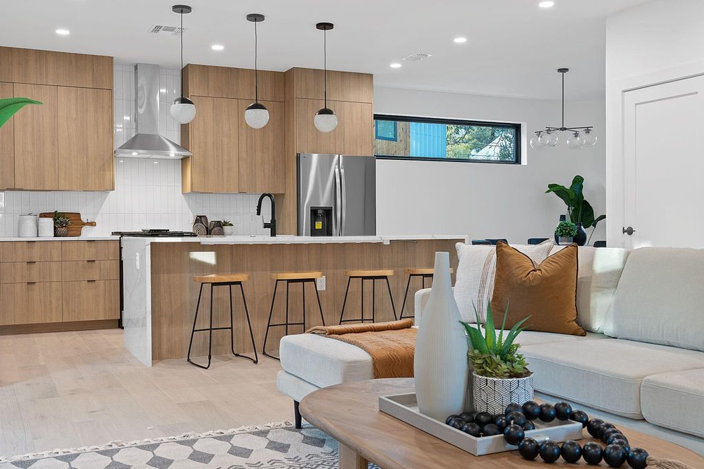DO NOT MISS THE HIDDEN HALF BATH DIRECTLY IN FRONT OF YOU WHEN YOU OPEN THE FRONT DOOR**Free buy down available with preferred lender reducing qualified buyers' rate by 1% for the first and second year. See documents for more information.** Located in the heart of East Austin with Lady Bird Lake directly across the street! Amazing VIEWS of town lake! Easily access Ann & Roy Butler Trail as it is just steps away from your front door. With future views of the"Wishbone" bridge over Lady Bridge Lake - https://www.kut.org/transportation/2024-04-04/ann-and-roy-butler-hike-and-bike-trail-pedestrian-bridge - Brand new construction from a leader in the industry, Forsite Studio, taking aninnovative approach to construct, a healthier, highly efficient, & more durable home - built to last the test of time. Looking to tomorrow - we are dedicated to the evolution of the home building process. We are devoted to deliver you a home inspired by modern architecture. where you can lay your roots in a community rich in character. Stepping inside this beautiful home, you are greeted w/spectacular picture windows - allowing natural light to flow through the spaces, gorgeous hardwood flooring throughout, unique light fixtures, & a neutral color palette. Showcasing an open floor plan - ideal for entertaining. The kitchen features a massive center island topped with Silestone counters, upgraded gas range, & close proximity to the dining area. The private owners' suite on the second story offers private access to a massive balcony and luxurious ensuite - fully tiled walk-in shower. Two secondary bedrooms with access to a full bath. Located on the third story is an oversized flex space, 4th bedroom with full bath, and access to another balcony. Enjoy a massive, completely fenced and private front yard. Plenty of parking space with an attached covered carport for 2 cars. Property is gated with convenient entry access via a FOB