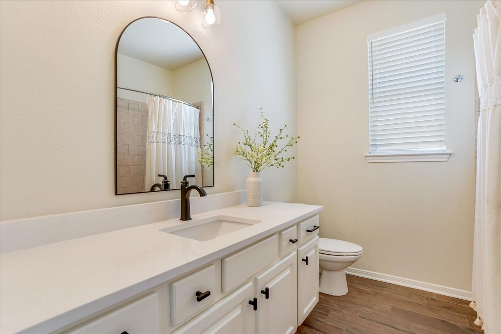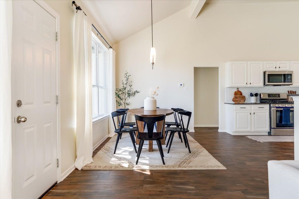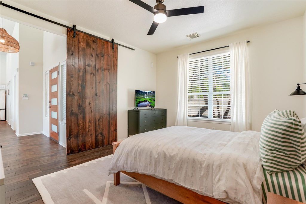 4.4 acres with voluntary hoa, very little deed restrictions.This attractive single-family residence in Leander presents an exceptional opportunity to own a home in excellent condition. The living room is a striking space, defined by its high, vaulted, and beamed ceiling, creating an atmosphere of grandeur and spaciousness. Imagine relaxing in this expansive area, the natural light accentuating the architectural details. The kitchen is appointed with granite countertops. A kitchen island provides ample space for food preparation and a kitchen bar offers a spot for conversation and casual dining.. The primary bedroom provides a private retreat with its ensuite bathroom. The bathroom features a double vanity and a tiled walk-in shower, creating a spa-like experience. There are 3 additional bedrooms and spacious secondary bathroom. A two-car garage with extra large drive for all the vehicles or play toys., In back yard a nice size patio and canyon views with loads of privacy. This updated and remodeled residence offers a blend of comfort and sophistication, designed for both relaxation and entertaining. All appliances updated along with new paint inside and out and roof is less than 1 month old. You can build another home, park boats, RV etc, have horses, goats, etc.