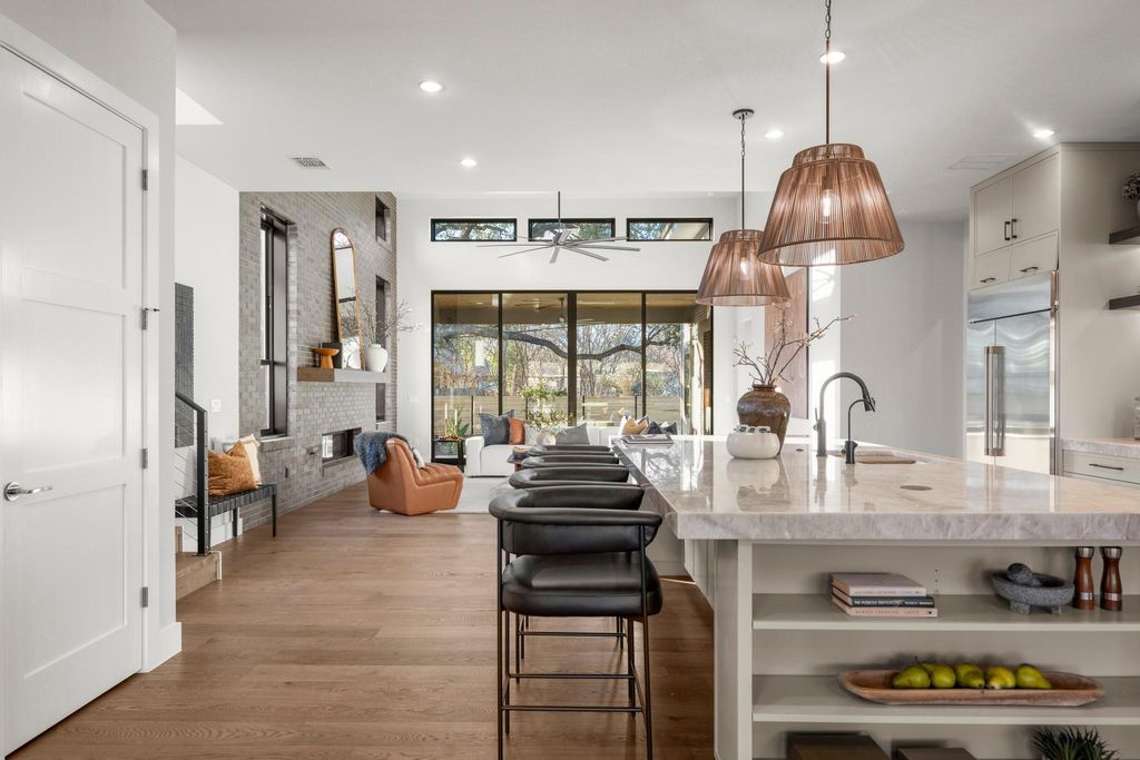 Located in the highly sought-after Crestview subdivision of Austin (78737), this exceptional new construction by Essential Elements showcases elevated design, superior craftsmanship, and timeless luxury. Situated on a large lot graced by two magnificent Heritage oak trees, the home offers 3,311 square feet of beautifully curated living space. The thoughtfully designed floor plan includes five bedrooms and four full baths, along with a spacious second living area or game room that provides flexibility for entertaining, relaxing, or family gatherings. The gourmet kitchen serves as the heart of the home, featuring custom cabinetry, striking Taj Mahal quartzite countertops, a built-in refrigerator, and high-end appliances that combine functionality with refined style. Throughout the home, an exquisite finish-out and designer details reflect the care and intention poured into this project"”truly one of the builder's favorites. Indoor and outdoor living blend seamlessly, leading to a private backyard retreat complete with a heated pool and spa, perfect for year-round enjoyment. Rarely does a property offer such a harmonious balance of natural beauty, luxury finishes, and thoughtful design. This is a rare opportunity to own an extraordinary new construction home in one of Southwest Austin's most desirable neighborhoods.