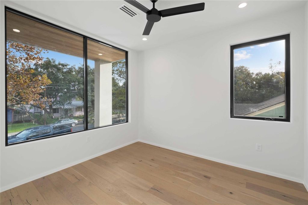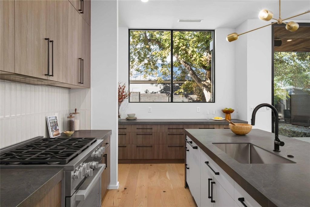 Welcome to a Modern Marvel in the Heart of Bouldin Creek. This custom-built masterpiece exudes elegance and sophistication, delivering an unparalleled living experience. Step inside and be captivated by the spacious, versatile open floor plan meticulously designed for comfort and style. The custom-sculpted stucco and cedar-clad exterior create a striking first impression that complements the natural beauty surrounding it. No detail has been overlooked in this stunning residence. The fully landscaped front and backyard, complete with an automatic smart sprinkler system, offer a peaceful outdoor oasis for relaxation and entertainment. Energy-efficient, expansive floor-to-ceiling doors and windows flood the home with natural light, seamlessly blending indoor and outdoor spaces. The primary suite is a true retreat with a private balcony overlooking magnificent Bouldin Creek. The spa-style bathroom exudes tranquility with a walk-in shower, luxurious soaking tub, and California-style walk-in closet. Quartz countertops grace every surface, adding modern elegance to each space. The garage comes equipped with an electric car charger station and polyurethane-coated floors, combining convenience and functionality. Throughout the home, white oak flooring evokes a sophisticated ambiance. Plumbing fixtures crafted by Brizo enhance both style and quality. The gourmet kitchen boasts a Miele appliance package, including a wine tower that will impress the most discerning home chef. Multiple outdoor terraces beckon you to bask in serenity and soak up the sunshine, while the third-floor downtown views serve as a breathtaking backdrop for every moment. The third floor also provides a spacious retreat with a full bathroom featuring a walk-in shower, perfect for entertaining guests. And last, but certainly not least, an oversized smart pool and spa combo awaits you, providing endless relaxation and enjoyment.