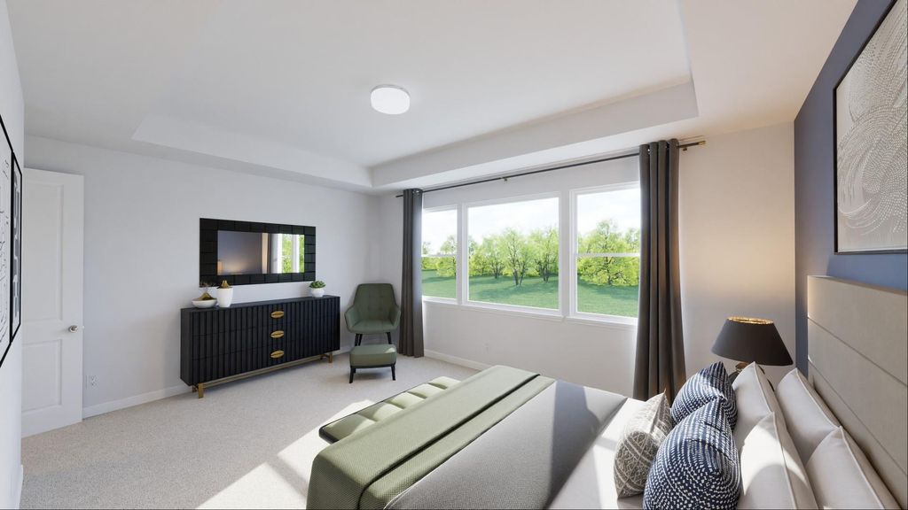 Introducing the Dominic floorplan, a beautifully designed home that combines style and functionality. This floorplan features a spacious 2-car garage, a cozy nook, and a versatile rec room. The primary bedroom includes a luxurious walk-in closet and an en-suite bath, providing a private retreat. The open-concept kitchen, complete with a pantry and modern appliances, flows seamlessly into the great room with a fireplace and a covered deck, perfect for entertaining. Additional highlights include a dining area, a loft, and a convenient laundry room. This home is designed to cater to all your lifestyle needs, offering ample space for relaxation and entertainment.