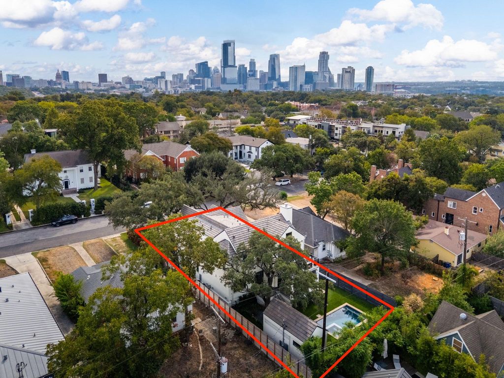 Old Enfield elegance, redefined. Perfectly positioned on one of Old Enfield's most prestigious streets, 1510 Pease Road is a newly completed architectural residence that balances timeless sophistication with modern design intention. Created by Lucky Charm Homes, this 2024 estate embodies Austin's enduring craftsmanship and elevated lifestyle. Spanning over 6,100 square feet, the home's thoughtful layout and refined detailing are immediately felt upon entry, where natural light pours through expansive steel-framed windows and warm materials ground each space in comfort and elegance. The main living area was designed for effortless entertaining and daily connection, centered around a dramatic fireplace and a chef's kitchen appointed with Wolf and Sub-Zero appliances, a concealed scullery, and striking quartzite surfaces. The primary suite offers a tranquil retreat with dual walk-in closets, a spa bath with soaking tub and walk-in shower, and a private balcony overlooking the treetops of Old Enfield. The lower level extends the home's lifestyle experience, featuring a home theatre, wellness studio, and a secondary living area. A sparkling pool and spa are complemented by an outdoor kitchen, a pool bath, and an outdoor shower, creating the perfect backdrop for relaxed living in the heart of Austin. A private office with a separate entrance, side-entry two-car garage, and smart home integration complete this architectural showpiece. Dual utility rooms are available for added convenience. Steps from Austin icons like Jeffrey's, Josephine House, and Fresh Plus Grocery, this address offers the ultimate combination of walkable convenience, quiet privacy, and enduring prestige.