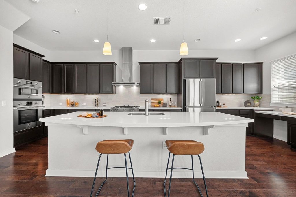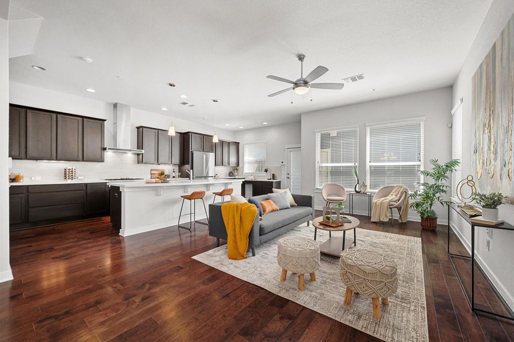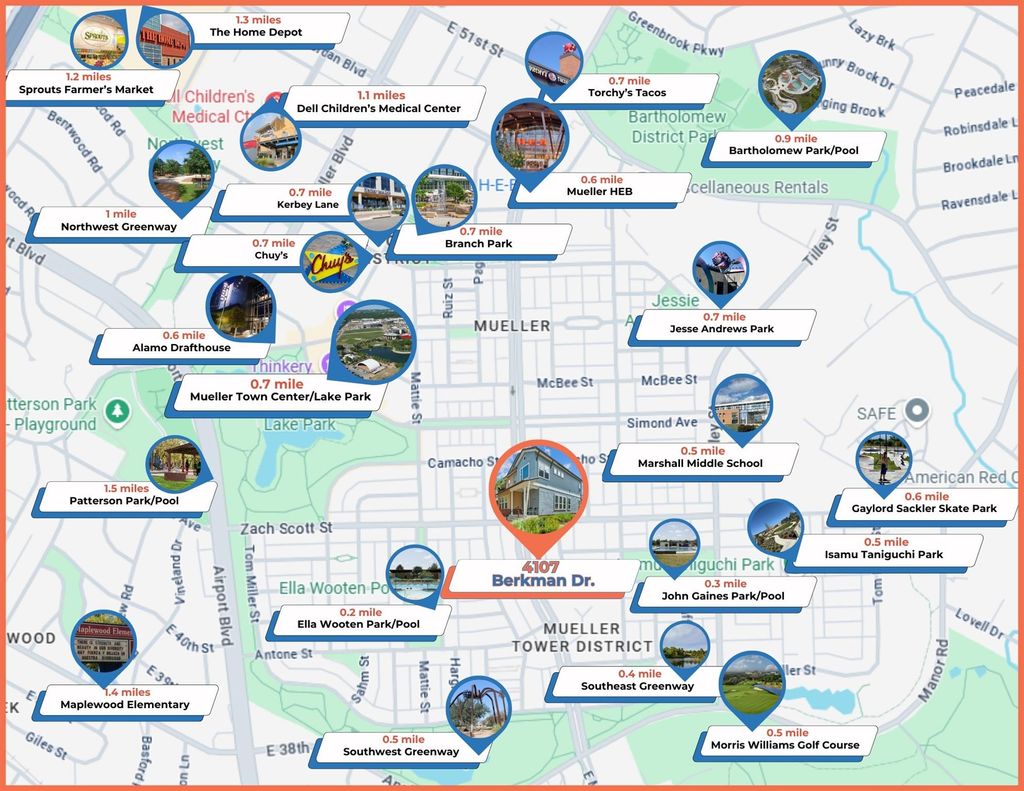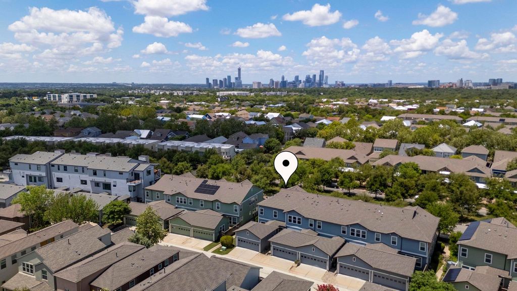 This isn't your typical Mueller row home. Positioned as a rare end unit with sweeping views of one of the neighborhood's wider paseos, this home is designed for those who appreciate light, space, and a sense of openness. With 2,244 sq ft to spread out, this is one of the largest two-story townhomes in Mueller. As you enter, you're welcomed by an abundance of natural light pouring in through a wall of windows, casting a glow on the engineered hardwood floors that flow seamlessly throughout. The living and dining spaces invite you to relax or entertain, while the downstairs room, which easily converts into a guest bedroom or office, provides the flexibility you've been searching for; plus a rare full bathroom on the main floor. For those who love to cook, the kitchen is nothing short of a dream, with Bertazzoni professional series double wall ovens, a 5-burner gas cooktop with cast brass burners, and a walk-in pantry. The thoughtful design continues with under-cabinet lighting, a built-in desk, and ample cabinetry. Upstairs, the primary suite feels more like a retreat than a bedroom. With a cozy sitting area, corner windows, and 2 walk-in closets. The ensuite bath features a soaker tub, separate shower, and plenty of room to unwind after a long day. Convenience doesn't stop inside. A high-tech security system with remote access to the front door and garage door, keyless entry, and a front door camera are all part of the package. Outdoors, forget the yard work, it's all handled by the HOA, leaving you with more time to enjoy Mueller's best amenities. From the community pools and parks to the weekly farmers market, you'll love the walkability of this neighborhood. And with restaurants, grocery stores, and public transportation nearby, it's easy to see why this location is a local favorite. Just a short 4.3-mile drive to downtown Austin and 2.3 miles to the University of Texas, this home offers the perfect mix of convenience, luxury, and a dash of neighborhood charm.