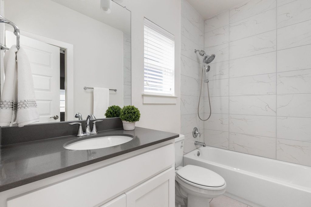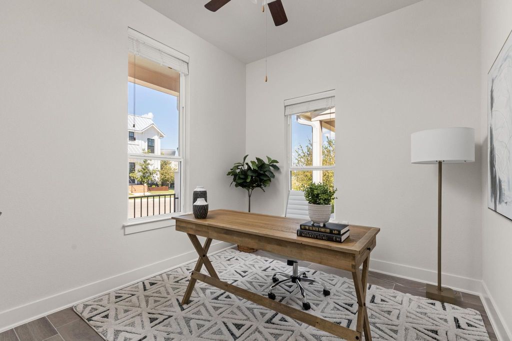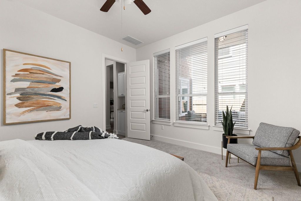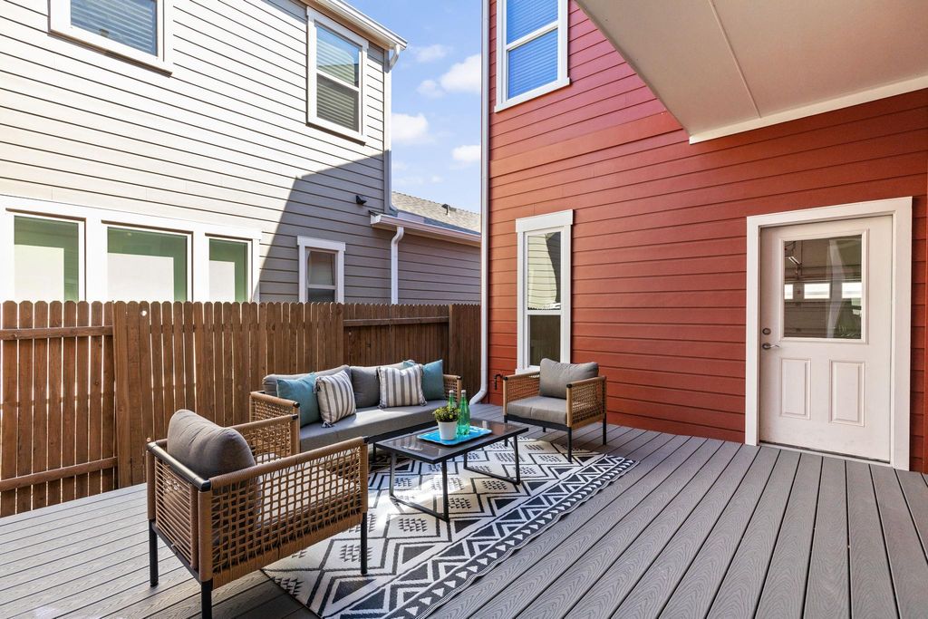 Stunning 4-bedroom - Primary BD & Laundry on Main - 3.5-bathroom, + Office + 2nd Living up single-family home nestled in the heart of Mueller. Thoughtfully designed with everyday comfort in mind, this home features both the primary suite and laundry room on the main level"”a rare and highly sought-after layout. Step into the open-concept living space, where soaring ceilings create an airy and inviting atmosphere. The chef's kitchen boasts an impressive 8.5-foot island, abundant counter space, and ample cabinet storage. Outfitted with stainless steel GE appliances, it blends style and functionality seamlessly. The main-level primary bedroom offers a quiet retreat complete with a built-in custom closet. Just down the hall, the main-level laundry room adjoins a spacious storage area, making day-to-day tasks a breeze. An office and powder room round out the versatile and efficient first floor. Upstairs, you'll find three additional bedrooms, two full baths, and a generous secondary living area to suit a variety of needs. Enjoy outdoor living across three distinct spaces: a private backyard with a deck perfect for entertaining, a welcoming front porch ideal for neighborly chats, and an upper balcony offering a peaceful escape. This home combines modern design with thoughtful functionality in one of Austin's most vibrant communities. Walk to H-E-B, the farmers market, two community pools, restaurants, parks, and more"”Mueller truly has it all. Don't miss your chance to own this beautifully appointed home"”schedule a tour today!