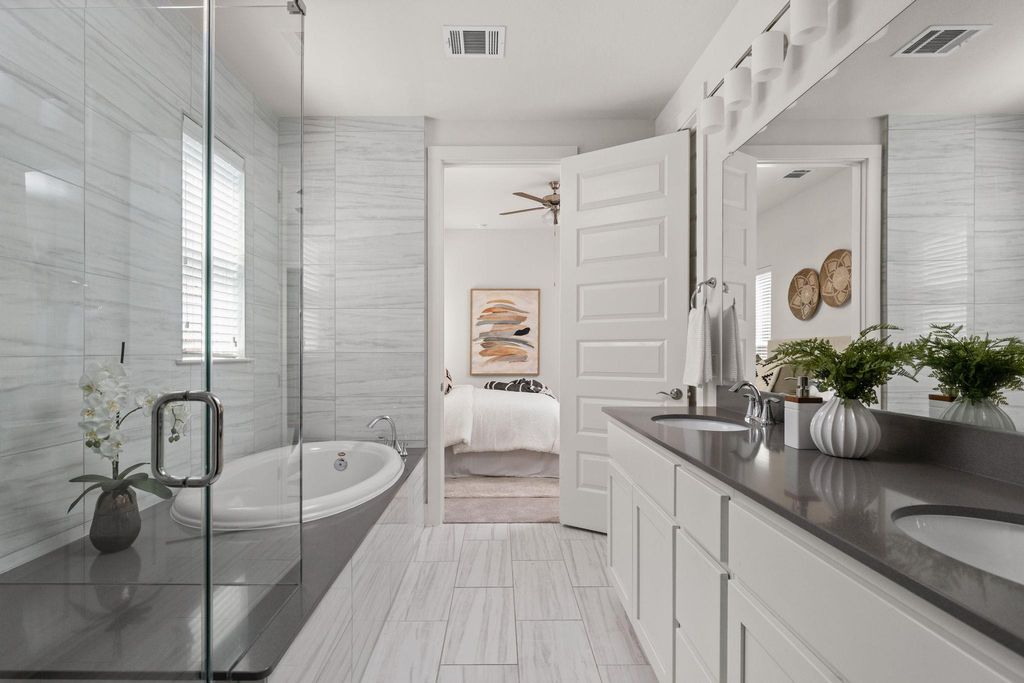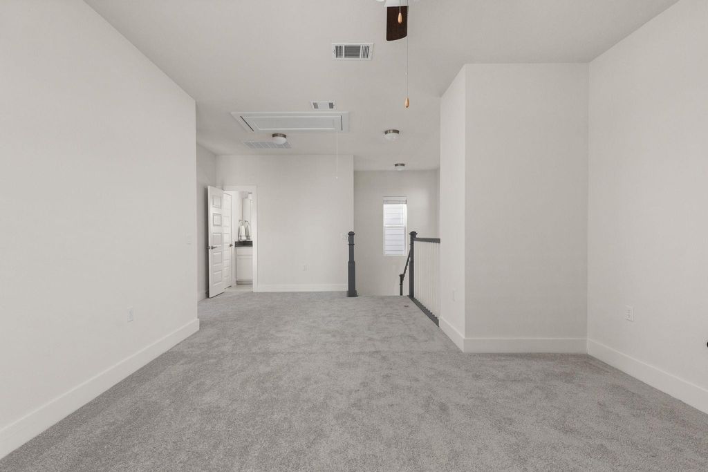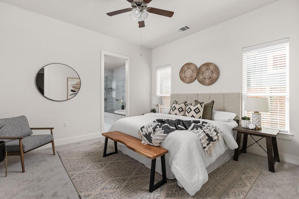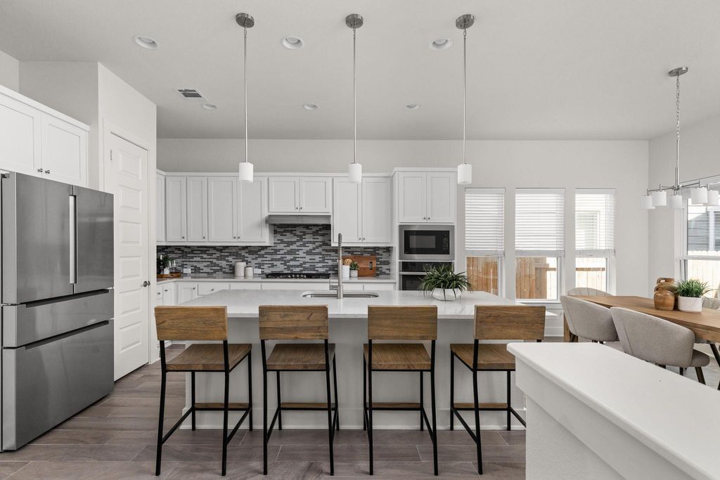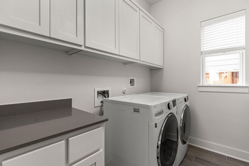 Stunning 4-bedroom - Primary BD & Laundry on Main - 3.5-bathroom, + Office + 2nd Living up single-family home nestled in the heart of Mueller. Thoughtfully designed with everyday comfort in mind, this home features both the primary suite and laundry room on the main level"”a rare and highly sought-after layout. Step into the open-concept living space, where soaring ceilings create an airy and inviting atmosphere. The chef's kitchen boasts an impressive 8.5-foot island, abundant counter space, and ample cabinet storage. Outfitted with stainless steel GE appliances, it blends style and functionality seamlessly. The main-level primary bedroom offers a quiet retreat complete with a built-in custom closet. Just down the hall, the main-level laundry room adjoins a spacious storage area, making day-to-day tasks a breeze. An office and powder room round out the versatile and efficient first floor. Upstairs, you'll find three additional bedrooms, two full baths, and a generous secondary living area to suit a variety of needs. Enjoy outdoor living across three distinct spaces: a private backyard with a deck perfect for entertaining, a welcoming front porch ideal for neighborly chats, and an upper balcony offering a peaceful escape. This home combines modern design with thoughtful functionality in one of Austin's most vibrant communities. Walk to H-E-B, the farmers market, two community pools, restaurants, parks, and more"”Mueller truly has it all. Don't miss your chance to own this beautifully appointed home"”schedule a tour today!