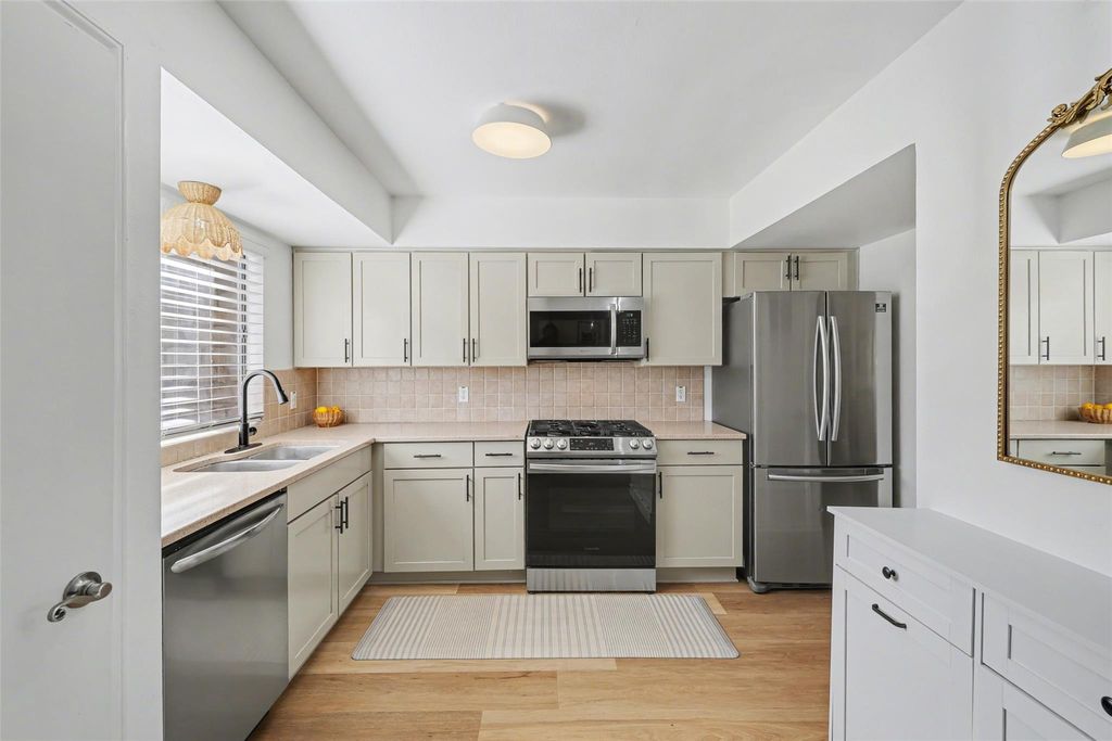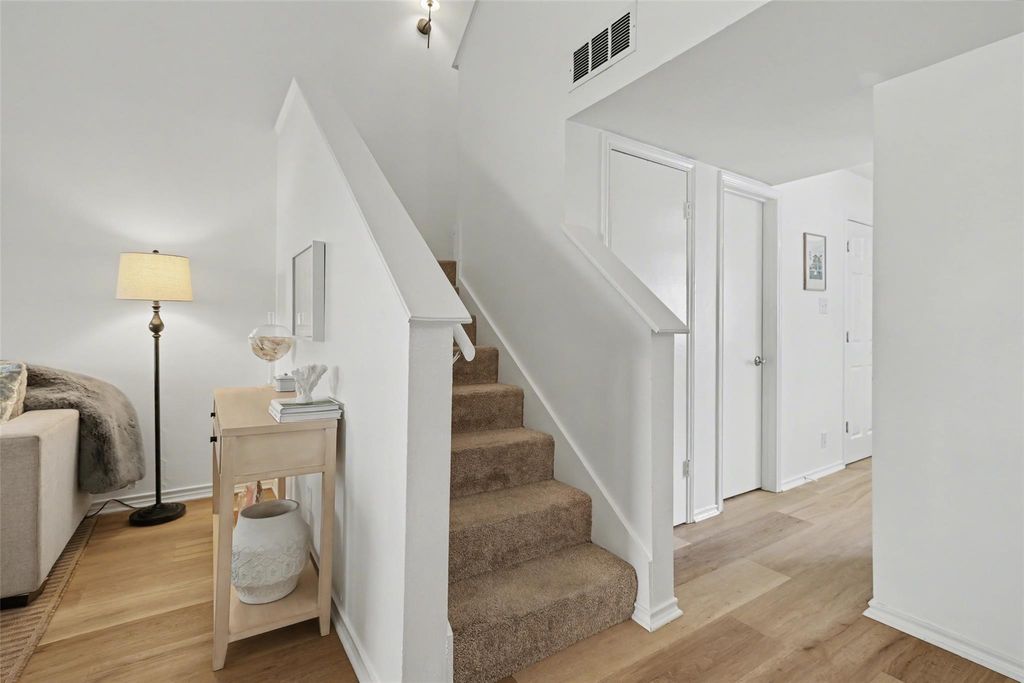 A truly private, FULLY UPDATED oasis tucked away in the heart of Tarrytown. The location is perfect: live near downtown while enjoying the quieter pace in this tranquil enclave of just 9 residences. Just blocks to the Lyons Muni golf course & less than a mile to Lake Austin & nearby eateries like Maudie's, Deep Eddy's & Zeds; or head west & to enjoy Mozart's, Quince & the Walsh Boat landing. All of this convenience (including the #18 Bus stop just a block away!) With 2 large bedrooms, 1.5 remodeled baths, this METICULOUSLY kept home is ideal for someone needing a dedicated office/guest room, a growing family or roommates! Upon entry, you'll be greeted with soaring vaulted ceilings & abundant light. The living room features a magnificent stone fireplace & plenty of room for seating, creating a cozy atmosphere to relax & unwind. Residents love the attached carport (2 side-by-side spaces directly below the unit w/ stairs to the back entrance. This unit is the ONLY unit with a 17' x 4.5' storage locker at the rear of the carport, perfect for outdoor enthusiasts or swapping out wardrobes! What really sets this home apart is the large, open kitchen (goodbye cramped, galley-style quarters), featuring stainless steel appliances, dedicated pantry & abundant counterspace. Off the kitchen you'll find an extra-deep laundry closet with shelving & room to accommodate a full-size washer & dryer....No more laundromats or shared laundry centers! The dining room has space for all of your guests. Head upstairs to the primary bedroom, which boasts a fabulous walk-in closet, eastern exposure & wood floors. The upstairs bathroom has a gorgeous, spacious tiled walk-in shower & was recently remodeled. A roomy 2nd bedroom also features wood floors & gets gorgeous natural light. The bedrooms are separated by closets; no shared walls! Enjoy quality living & location with the added financial benefit of a new hot water tank, AC & furnace; you'll be so glad you jumped on this opportunity!