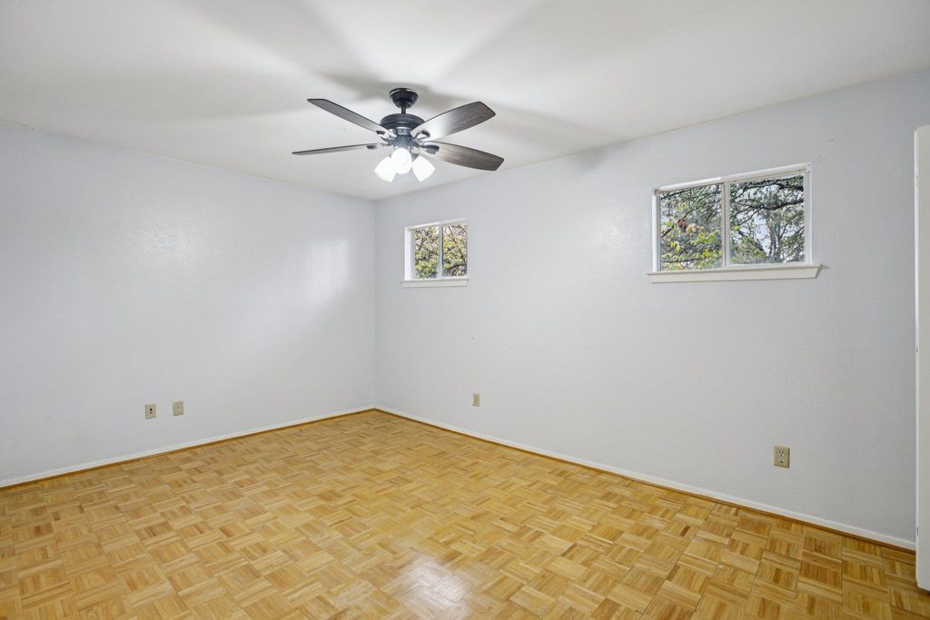 Ideally situated backing to the Greenbelt and trail system of Balcones District Park, this home offers direct access to miles of paved hiking trails and outdoor recreation, all just one mile from The Domain. The kitchen features a breakfast bar and two dining areas, one of which easily functions as a study or flex space. The open living room is anchored by a dramatic floor-to-ceiling stone hearth fireplace, with a convenient half bath nearby. The spacious primary suite includes a makeup vanity and walk-in closet, while the guest bath offers a double vanity. A large game room or potential fourth bedroom is located on the main floor, providing flexibility for today's lifestyles. Recent improvements include a new roof and updated HVAC system. With proximity to the Domain, the tech corridor, and the airport, this is the largest home in the neighborhood at the lowest price per square foot"”an exceptional opportunity to secure greenbelt living at a compelling value. No HOA. Zoned to Anderson High School.