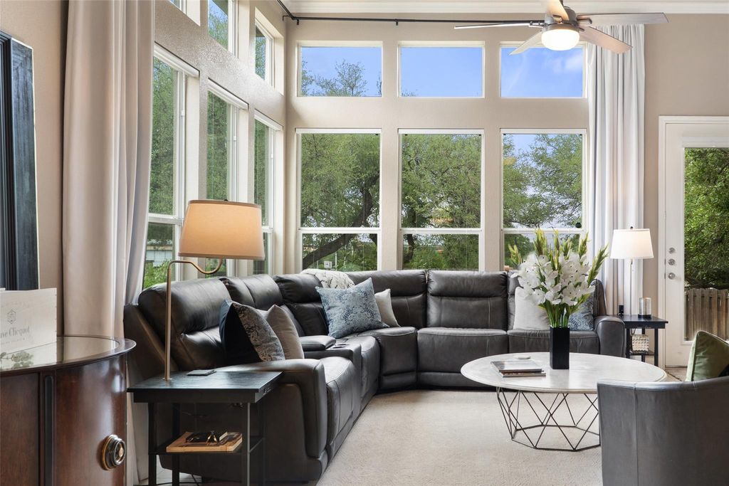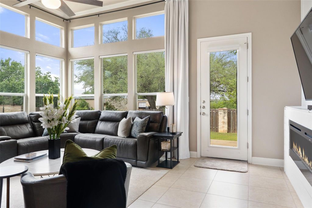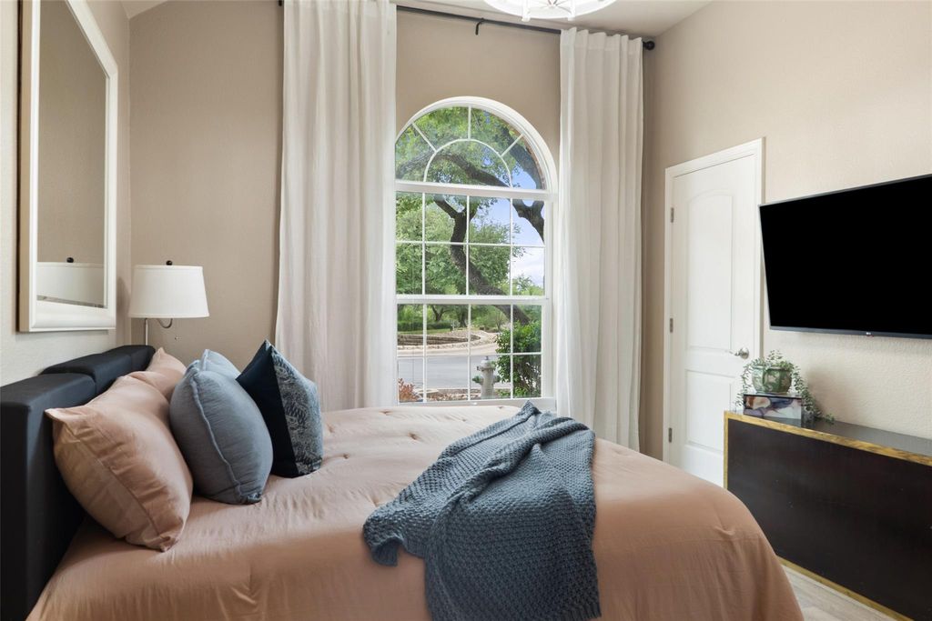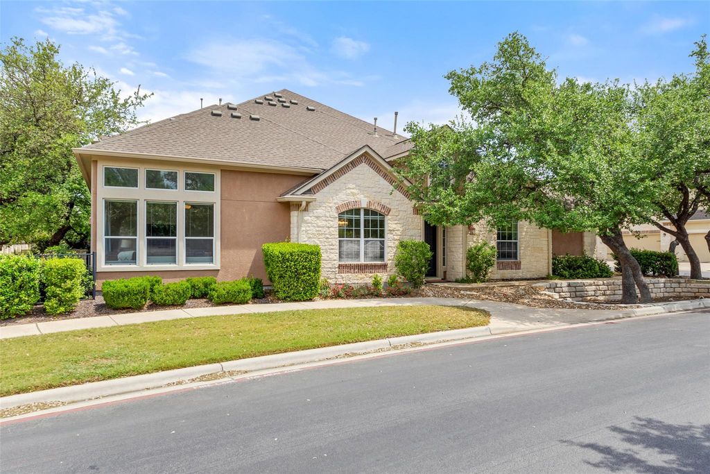 Spacious Single-Story Condo with High Ceilings and Modern Comforts Welcome to this beautifully designed single-story condo offering 1,778 square feet of thoughtfully laid-out living space. Featuring 2 spacious bedrooms and 2 full bathrooms, this home combines comfort and convenience with elegant touches throughout. Soaring high ceilings enhance the open feel of the main living areas, creating a bright and airy atmosphere perfect for relaxing or entertaining. The large living room flows seamlessly into the dining area and kitchen, offering an ideal setup for everyday living. Retreat to the generous primary suite with a private ensuite bath and ample closet space. The second bedroom is generously sized and has double closet doors. The home office is located off the foyer and could double as a guest room if needed. Additional highlights include a private 2-car garage, dedicated laundry room, and plenty of storage throughout. Whether you're downsizing or looking for low-maintenance luxury, this condo offers all the benefits of single-level living in a comfortable and stylish setting. This is currently the only single-story unit on the market in Vistas at Lakeway. HOA fees include condominium structure insurance, water service, trash service, yard maintenance, common area maintenance including the pool and cable/ internet service through Spectrum and exterior pest control.