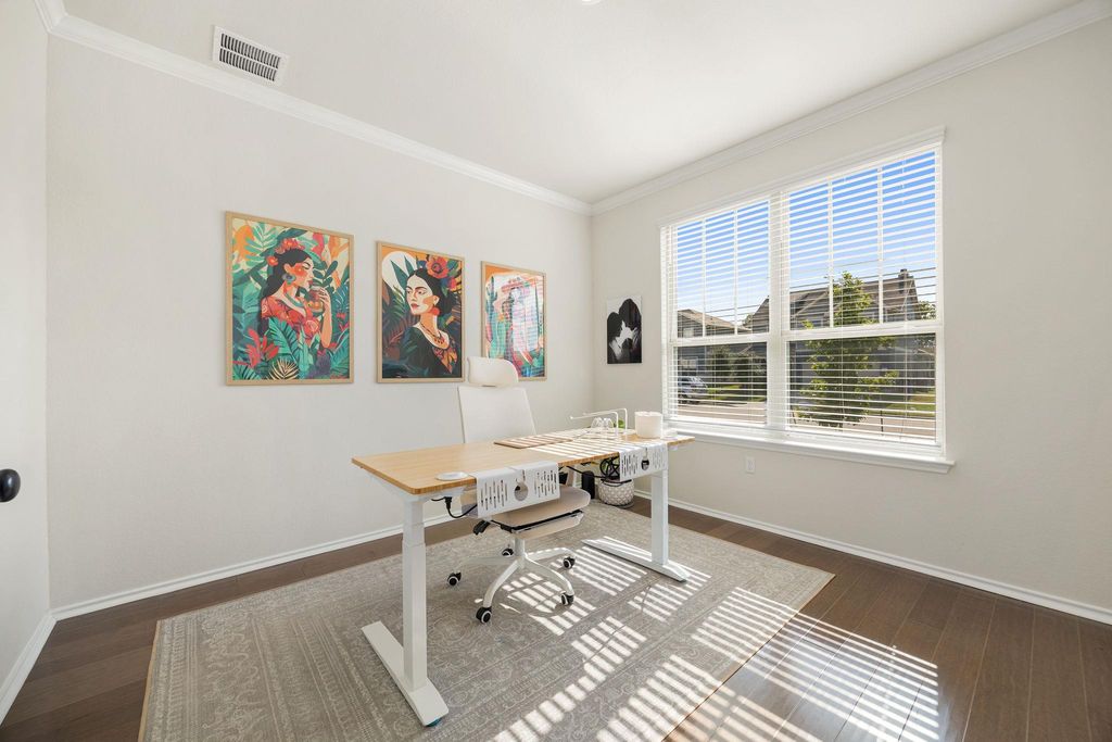 This stunning home built in 2022 by Pulte Homes in the sought-after East Parke community offers the perfect blend of comfort, style, and functionality. Designed with working professionals in mind, the main level features a dedicated office, powder room, open kitchen with coffee and wine bar, and inviting living spaces that set the tone for both productivity and relaxation. Upgrades include a built-in mini fridge and wine cooler, painted garage interior, a True Protection security system, a professionally installed media box above the fireplace, and freshly painted backyard fencing. Upstairs, you'll find four spacious bedrooms, two full baths, a large game room, and generous closet space. The primary suite offers a walk-in closet and a private bath for a retreat-like feel. The expansive backyard is ideal for family gatherings, pets, and outdoor fun, while the two-car garage provides excellent storage. This energy-efficient home benefits from a 10-year structural warranty, underground utility lines for improved reliability, and a new stormwater drainage system that protects the community from flooding. Its location is unbeatable"”just 20 minutes from downtown Austin, 15 minutes from the Domain, and 10 minutes from Mueller, with Magnolia Montessori for All only minutes away. Combining thoughtful upgrades, modern design, and a vibrant location, this home is move-in ready and built for both convenience and peace of mind. ***Bundled service pricing available for buyers. Connect with the listing agent for details.