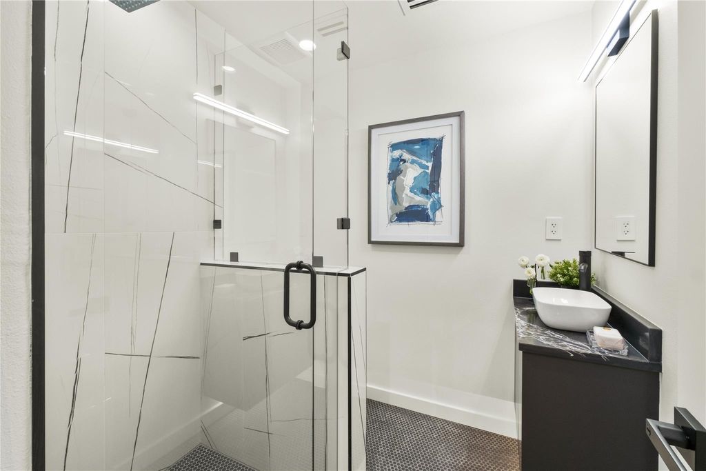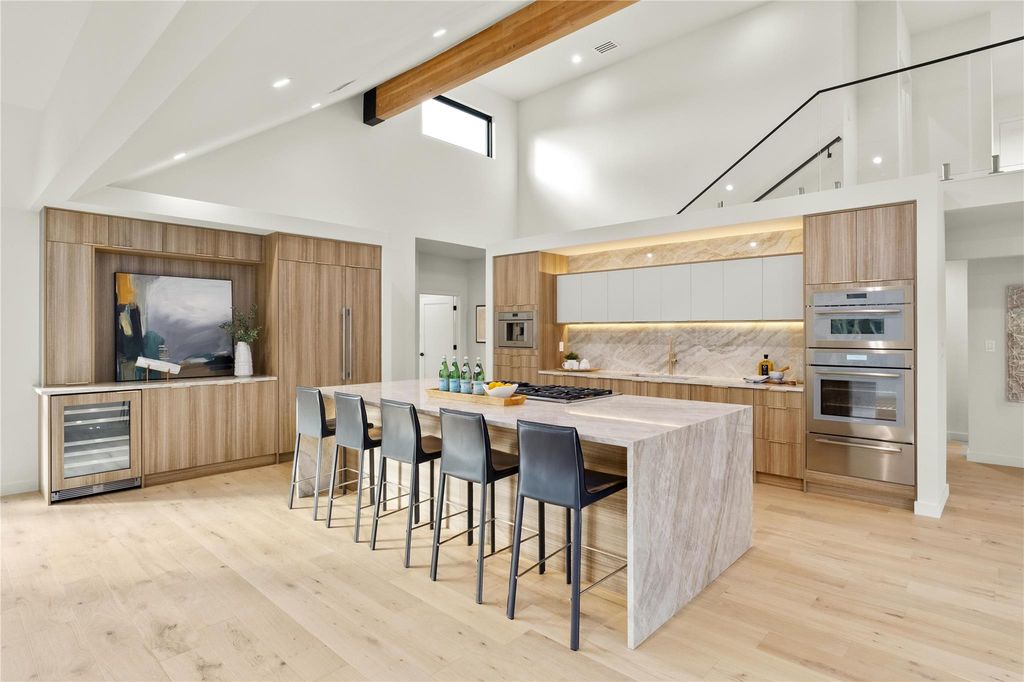 Price Reduction! Welcome to your private retreat of contemporary luxury, nestled within the tranquil beauty of Lakeway. This exceptional home, built in 2025, exudes sophistication and style at every turn, set on a lush half of an acre beneath a canopy of mature trees. Step inside to discover a seamless fusion of modern design and effortless functionality. Sunlight pours through expansive windows, illuminating the open-concept layout, where the kitchen flows effortlessly into the dining and living areas"”an inviting space for both intimate gatherings and grand entertaining. Offering Thermador appliances, massive butler's pantry off main kitchen with a separate 84 bottle wine closet. Boasting glass staircase and floating oak stairs. Designed for both comfort and convenience, the main level boasts two spacious bedrooms including a serene primary suite with a spa-like bath and generous walk-in closet. Upper level has a private bedroom and full bath with entrance to garage. The lower level offers a secondary living area, a versatile flex room, and a private guest suite with its own en-suite bath. Two additional bedrooms with a full bathroom. Full kitchenette, laundry with a pass-through to 1600 sqft of decking. Outdoors, a covered patio and dining area invite you to savor al fresco meals amid the natural beauty of your surroundings. Fully engineered support and equipment pad for optional plunge pool in deck. Enjoy the private backyard with a beautiful canyon and year-round stream flowing in the back. Located just minutes from Hill Country Galleria, top rated Lake Travis ISD schools and premier shopping, dining and recreation. This home offers the perfect blend of luxury, comfort and convenience.