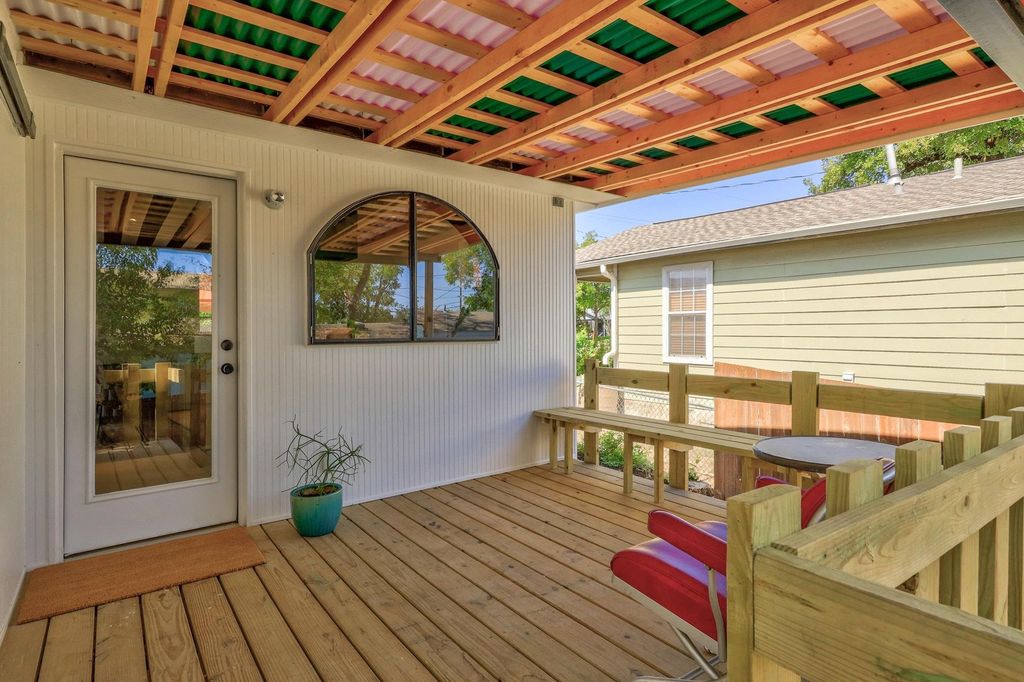 Steps from locally loved eateries, music venues and creative spaces is this thoughtfully remodeled bungalow. Optimally located within desirable East Austin, the 78702 zip code is known for its trendy, eclectic, rapidly developing vibe"”blending culture, art, history, and new development. The urban energy in addition to its investment potential give this unique property unbeatable opportunities in a high growth corridor of ATX. Truly original in its aesthetic-- this rustic, Marfa-inspired style complete with modern upgrades was designed by local architect Alan Gonzalez. Taken down to the studs in 2019, the home features new walls, new HVAC system, new appliances, new water heater, and washer/dryer connections. Freshly painted exterior in 2025. Design highlights include custom windows in the kitchen, bathroom, and office/studio area, original hardwood floors, plank ceilings, and a spacious bathroom with an open-air walk-in shower. The flexible office/studio space adds versatility for work or creative use. A covered deck opens to a private backyard, offering a quiet outdoor retreat. This stylishly designed, open concept home offers a smart alternative to condo living + is the perfect destination for those seeking convenience + low maintenance living.