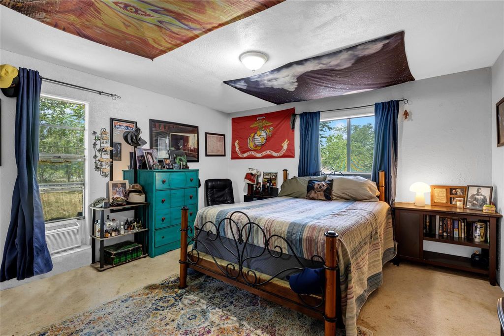 5.16 acres with a house that is just 12 mins outside of Liberty Hill! 23024 Round Mountain Circle, Leander, TX is a 3 bed 2 bath house on 5.16 acres that is fully fenced (some parts of fence needs to be repaired) and cross fenced. When you drive up to the property you will notice gates on both sides of the circle drive and a detached 3 car carport. In the front of the house has a covered porch that over looks the goldfish & koi fish pond. You enter the house and are in the living room that boast a beamed ceiling, wood accent wall, and a electric fireplace. The living room opens up to the dining area and kitchen. The kitchen has marble tile countertops, small island, stainless steel oven, dishwasher, and refrigerator, and pantry. Look out onto your above ground pool and covered deck from the window above the kitchen sink when doing dishes. The master bedroom has laminate wood floors, and double doors that open up to the master bathroom that has a walk in shower, single sink vanity, and multiple glass block windows. The Master Bedroom also has access to the 2nd enclosed patio Like mentioned before the outside of the back of the house is a large deck with an above ground pool and parts of the deck have covered seating areas. Perfect place to hang out during the summer heat. This property is on well water and has a 2500 gallon water tank. In the backyard there is a second pond that can be fixed to retain water. This house has great bones and with a little love and attention it has potential to be amazing.