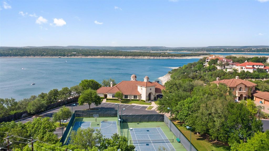 Immaculate Waterfront Estate in Costa Bella Extraordinary Lake Travis estate blends architectural elegance w/modern comfort. 2.167 acres of manicured grounds, 5 bdrms/5 full/2 half ba,separate 1-bdrm/1-ba casita for guests. Home showcases breathtaking panoramic lake views thru brand-new picture windows & nearly 2,000 sqft of terrace space designed for seamless indoor-outdoor living. Grand foyer opens to dramatic soaring ceilings & a dining area framed by endless water views. Gourmet kitchen recently updated w/ granite countertops, new hardware, a redesigned island, & a new Janska range, complemented by wood-beamed ceilings, stone accents,& stainless-steel appliances. Primary suite, feature terrace access beneath a pergola, a cozy fireplace, wet bar, custom walk-in closet, & a spa-inspired bathroom. A handsome library w/ rich wood walls, built-in shelving, & lake-facing balcony offers a quiet escape. Upstairs-spacious guest rooms & a second living area continue the home's thoughtful flow & craftsmanship. Outside, resort-style living w/ heated pool, expansive patios, & lush landscaping overlooking the shimmering lake. A tram provides easy access to the private boat dock"”anchored in a deep, protected cove that maintains water even during drought conditions"”featuring space for a 23'+ boat, 2 jet ski hydroports, & a bug misting system. Recent upgrades include: "¢ Interior paint & flooring refinishing "¢ New HVAC system (2024) "¢ Retaining wall/foundation improvements (2024) "¢ New pool plaster & equipment updates "¢ Tesla solar power system w/3 wall units=a day of backup power "¢ Smart lighting switches & LED fixtures throughout Additional features include: elevator, multi balconies, Lutron system, 4-car garage (2 attached/2 detached), & separate apartment/casita w/ kitchenette & private entry. Exceptional property captures the very best of Lake Travis living"”privacy, timeless design, & a true sense of place w/in one of the area's most coveted waterfront communities.
