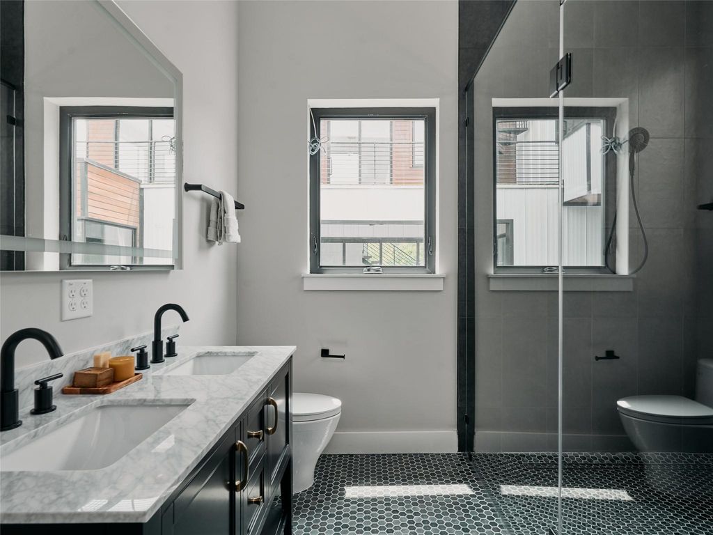 Welcome to 412 Kemp St "” a modern masterpiece perched high above the lush Roy G Guerrero Park with unobstructed views of the downtown skyline. This gated and fully fenced true single-family home offers 3 bedrooms, 3.5 bathrooms, and a resort-style backyard with a pool, spa, and turfed surround. The sleek architectural design showcases soaring ceilings, a floating staircase, and a seamless open-concept layout. The primary suite is thoughtfully located on the first floor with direct access to the pool area. Multiple decks"”including a rooftop retreat"”capture the downtown views in every direction. All just minutes to the airport and the heart of downtown Austin.