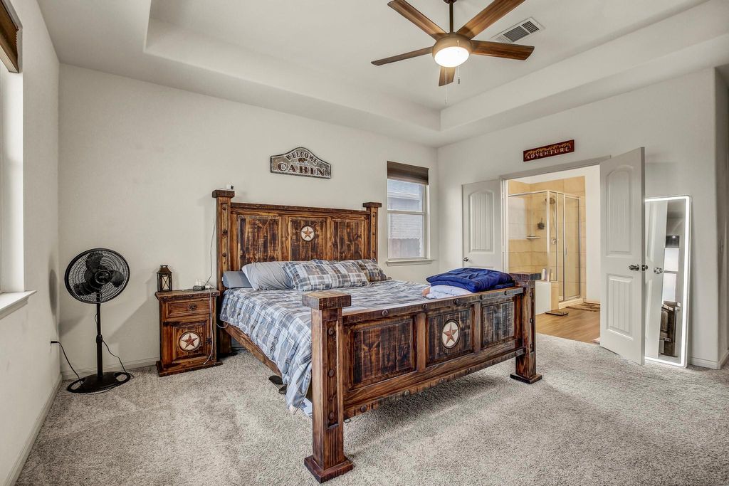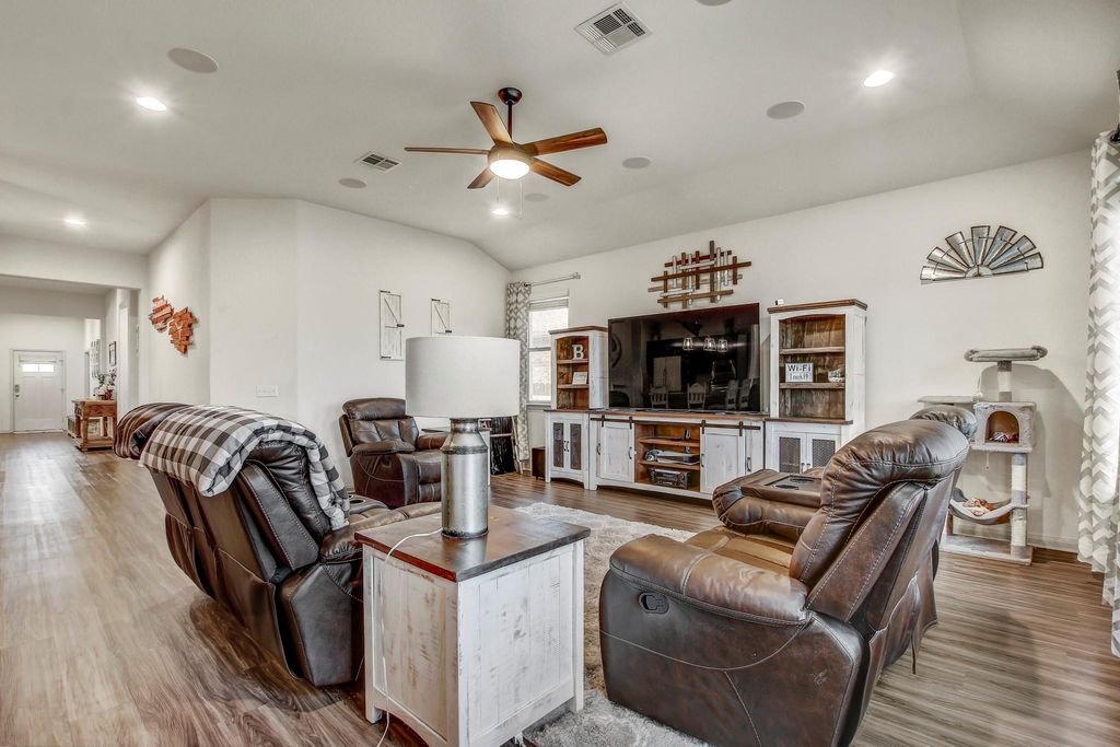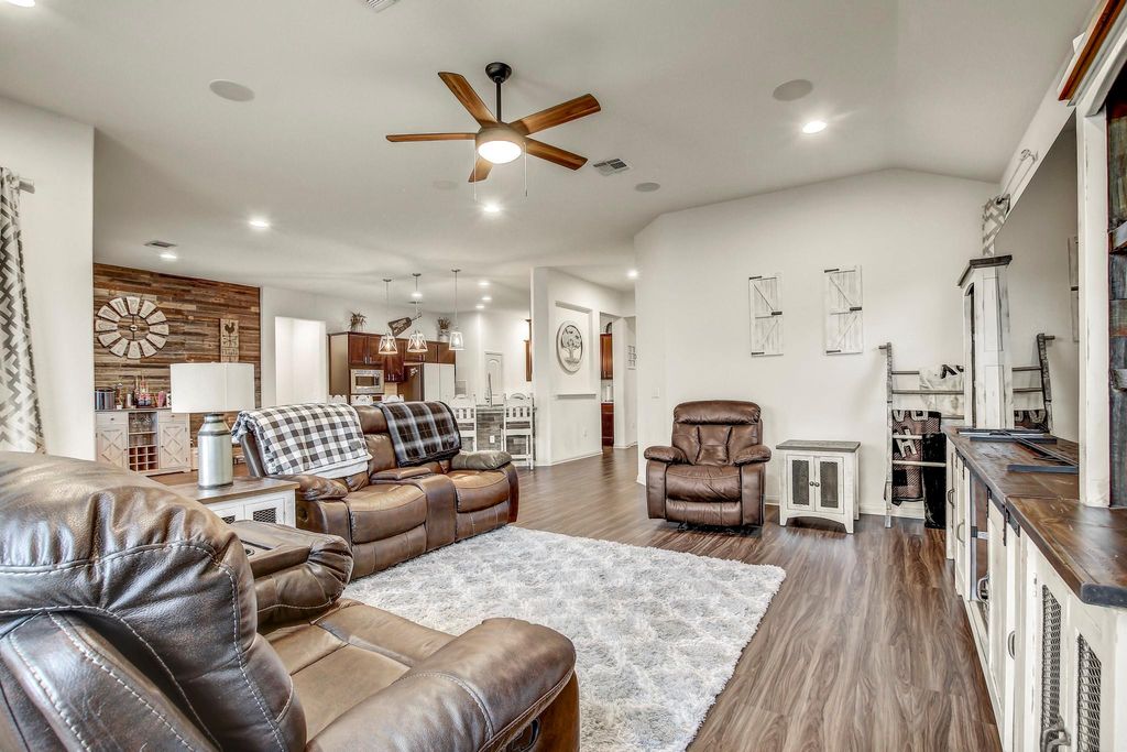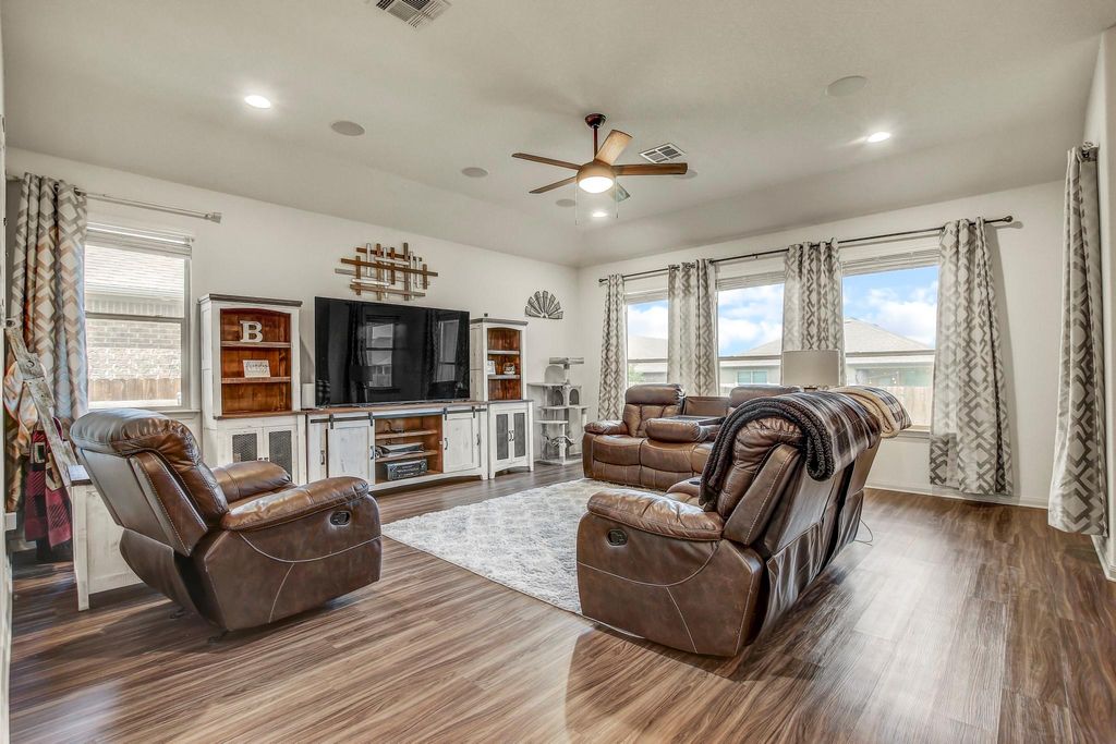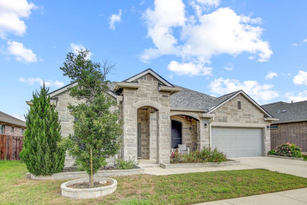 Prepare to be seriously smitten by 18321 Cercina TRL, Pflugerville, TX 78660, in the delightful county of, well, Pflugerville! This single-family residence is looking positively dashing, ready for its close-up and your discerning eye. The living room is where the magic truly happens, featuring a vaulted ceiling that reaches for the stars and a custom wood accent wall that adds a touch of rustic charm, just begging for cozy evenings and spirited gatherings. Imagine whipping up culinary masterpieces in the kitchen, complete with a backsplash that adds a pop of personality, a kitchen bar perfect for casual chats, and a kitchen peninsula for extra prep space. Granite countertops gleam under the light, while shaker cabinets offer plenty of storage, all anchored by a large kitchen island that's practically begging for a pizza-making party. The stovetop is ready to sizzle, inviting you to create the feasts of your dreams. Retreat to the bedroom, a sanctuary boasting an ensuite bathroom for ultimate privacy and a tray ceiling that adds a touch of architectural flair. The bathroom itself is a spa-like haven, featuring a double vanity so you can share the space without stepping on each other's toes, and a tiled walk in shower that promises invigorating starts to your days. This home also boasts four bedrooms and three bathrooms, ensuring everyone has their own space to unwind and recharge. Park your prized possessions with pride in the two-space garage. The fenced backyard and patio promise outdoor fun and relaxation. The laundry room makes chores a breeze, while the walk-in closet offers endless storage possibilities. This 2018 single story residence is simply irresistible, ready to be your personal paradise! Close to both IH 35 and Hwy 130 - Easy access to new HEB, Pflugerville Lake and shops, restaurants and Stone Hill Shopping Center. There is an amazing waterpark close by for lots of fun activities. There are highly rated schools as well.
