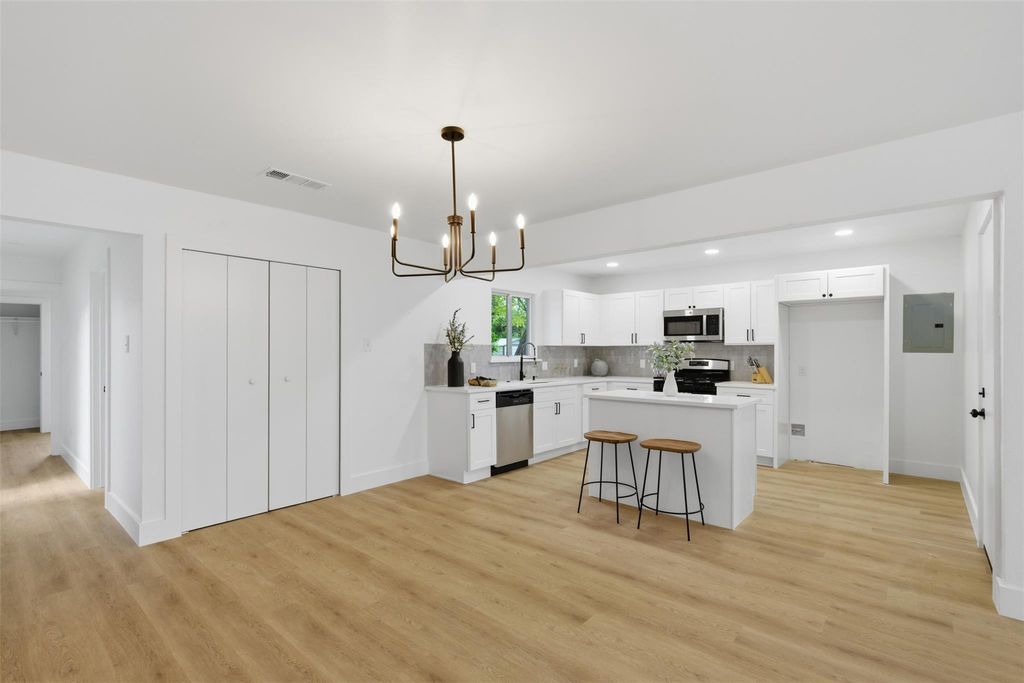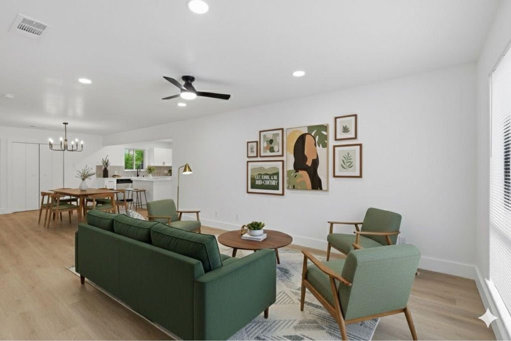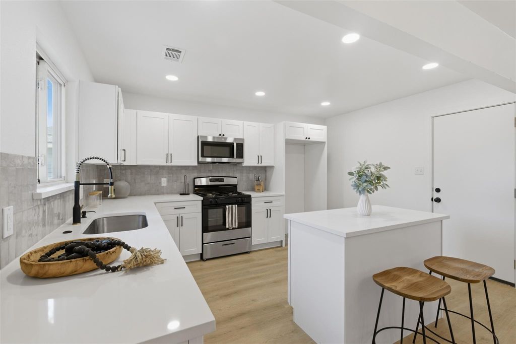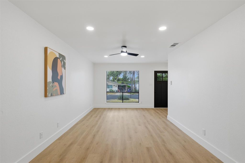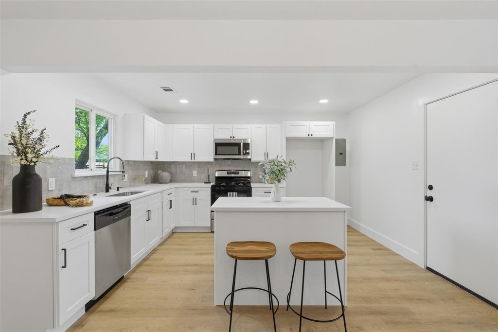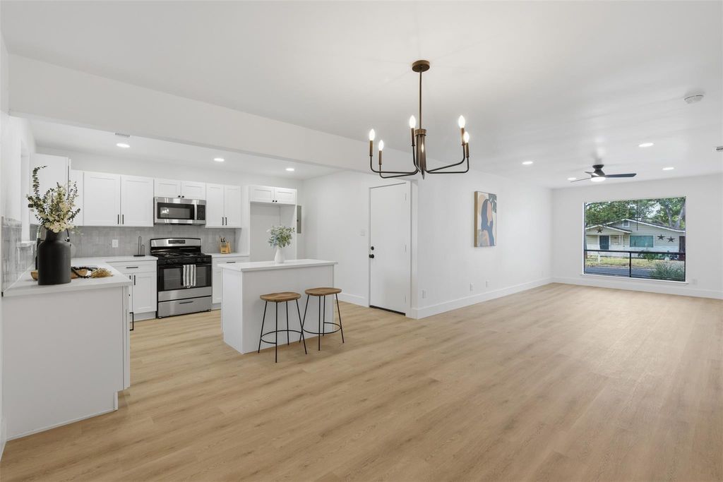 This single-story home blends functionality and style in a compact yet open layout. Four bedrooms and two full baths surround a central living space with vinyl floors and abundant natural light from south-facing windows. One of the bedrooms can easily function as a private home office, adding flexibility for remote work or creative space. The updated kitchen features quartz counters, a center island, white cabinetry, and stainless steel appliances. The primary suite offers a bath with a separate shower. The home's flow emphasizes connection"”no interior steps, an open family room, and a layout perfect for quiet evenings or gatherings. Outside, the backyard provides a private retreat with chain-link and wood fencing, mature trees, and space for activities. South-facing orientation ensures bright, sun-filled rooms throughout the day. Located in Oak Lawn Sec 01, just 10-15 minutes from Downtown Austin, Mueller Lake Park, and Austin-Bergstrom International Airport, with quick access to shopping, cafes, and restaurants. Upgrades include several replaced windows, new floors, updated plumbing and electrical, new water heater, new cabinets, updated bathrooms, baseboards, new appliances, new roof, interior/exterior paint, new electrical fixtures, partial wood fence, and a brand-new kitchen. Owner financing available with a minimum 15% down payment; 30-year loan at 10.99% interest.
