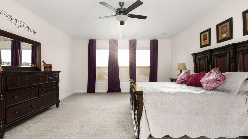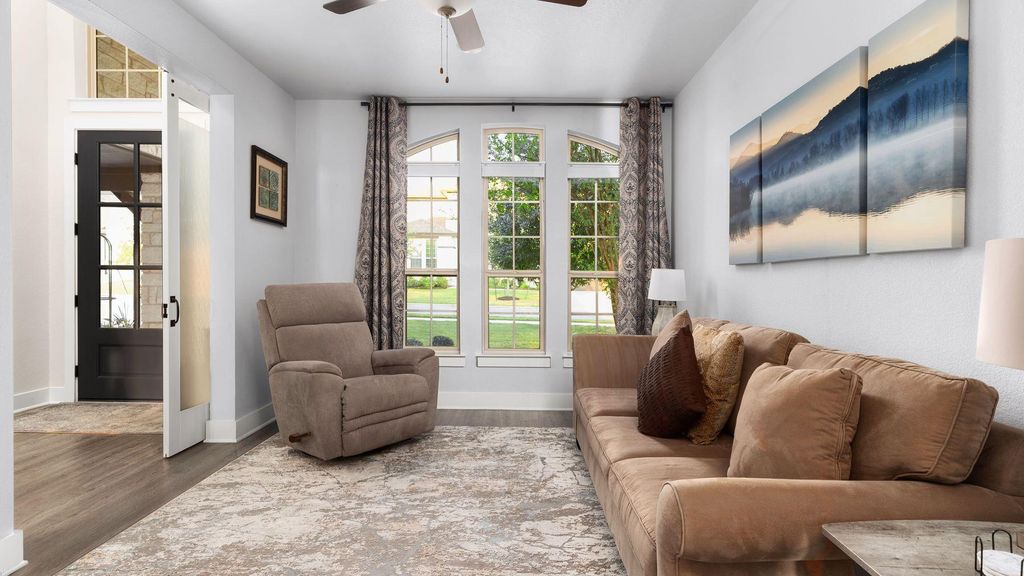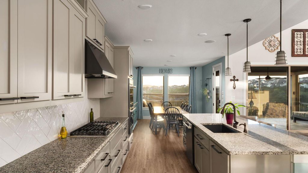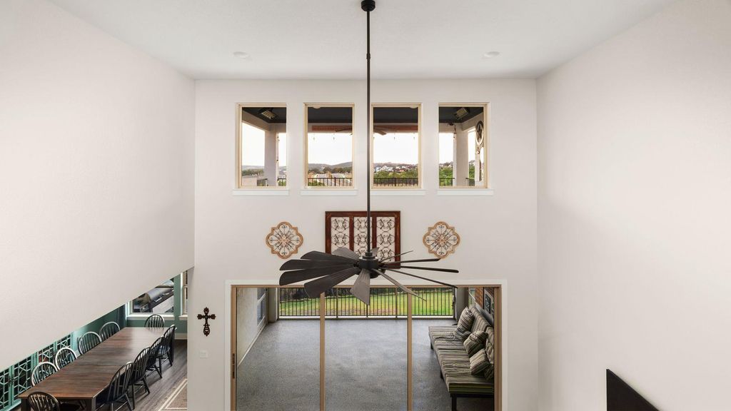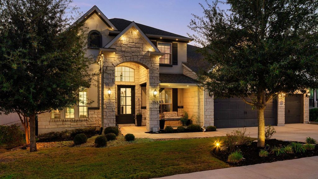 Stunning East-Facing Taylor Morrison Larimar Home with Hill Country Views This beautifully upgraded Taylor Morrison Larimar home offers luxury, comfort, and breathtaking unobstructed Hill Country views. Situated on a spacious cul-de-sac lot, the home features soaring ceilings, abundant natural light, and an open floor plan designed for modern living. Highlights include a media room, game room, guest suite on the main floor, and a three-car garage. The screened-in patio and large sliding glass doors create seamless indoor-outdoor living, while built-in heaters on both the patio and balcony allow year-round enjoyment. Additional thoughtful upgrades include extra outlets, additional fridge space near the kitchen, a freezer outlet in the laundry room, and a convenient connection from the laundry room to the owner's suite closet. Located in the highly sought-after Travisso community, this home combines everyday convenience with peaceful Hill Country surroundings, just minutes from Cedar Park shopping, dining, and entertainment.