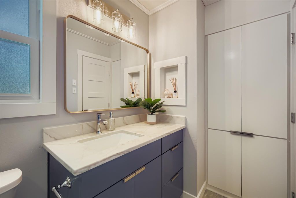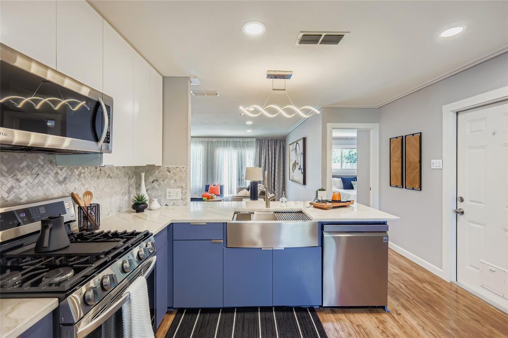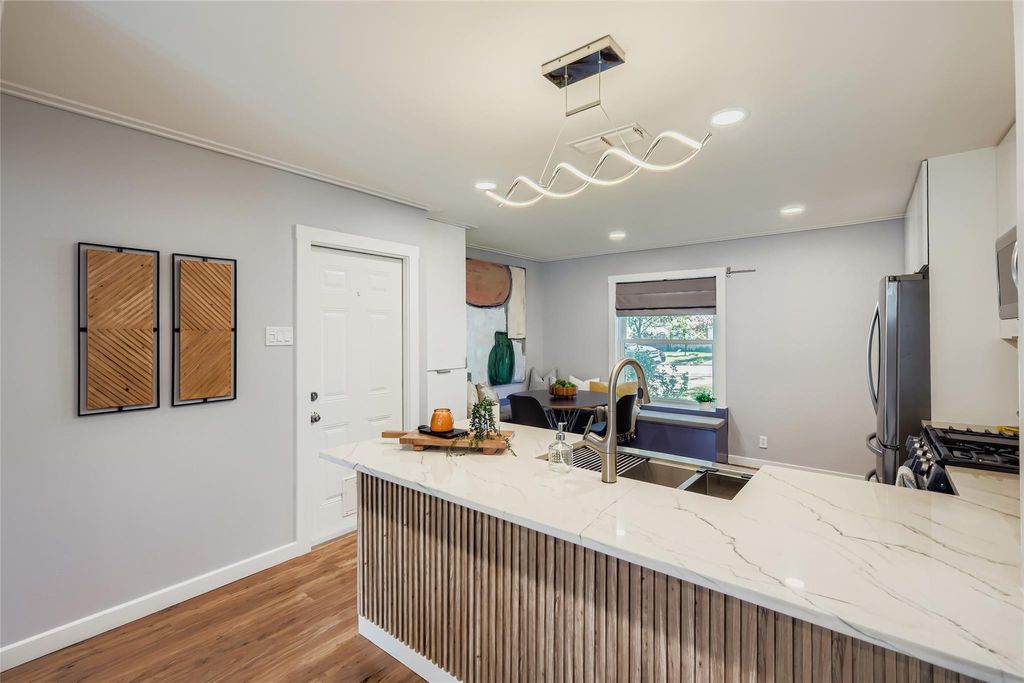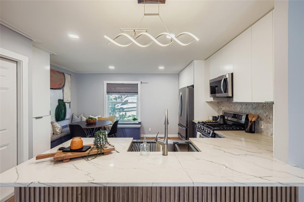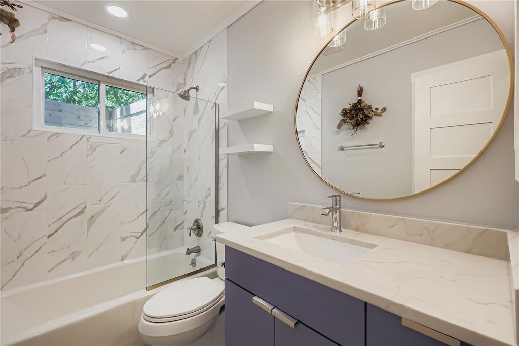 Welcome Home to 6408 King George Drive! Perfectly tucked away in the quiet Buckingham Place pocket neighborhood of 78745 South Austin. This home has been thoughtfully and professionally updated throughout for its new owners! Renovations include Full studs out renovation with new floors, kitchen cabinets, appliances, drywall, trim & crown molding, recessed lights throughout, plumbing & new main PVC sewer line replaced, 1 year old new "30-year" dimensional shingle roof, fresh paint, fully remodeled bathrooms, & NEW Water Heater. Every aspect of this home has been upgraded with High Quality materials, quality craftsmanship and is ready for immediate move-in! Please take note of the large .239 acre a lot with a massive backyard that has tons of potential, space & privacy! The 8' tall privacy fence and cinderblock wall give this home excellent sense of privacy and seclusion! The main living area is perfect for entertaining with an open floor plan, lots of natural light, and tons of attractive accent features throughout. The kitchen has beautiful marble countertops, gas stove/oven, and perfect eat-in kitchen setup with a built-in booth storage bench. The primary bathroom suite has been exceptionally updated with new vanity with Quartz Counters, tile floors, lighting, and mud-set walk-in shower. On the other side of the home you'll enjoy the two spacious guest bedrooms and second full bathroom. Come and see this one before it's gone! This location is close to everything that Austin Has to offer and just minutes to Downtown. The level of updates in this homes is truly a standout, so come and take a look!