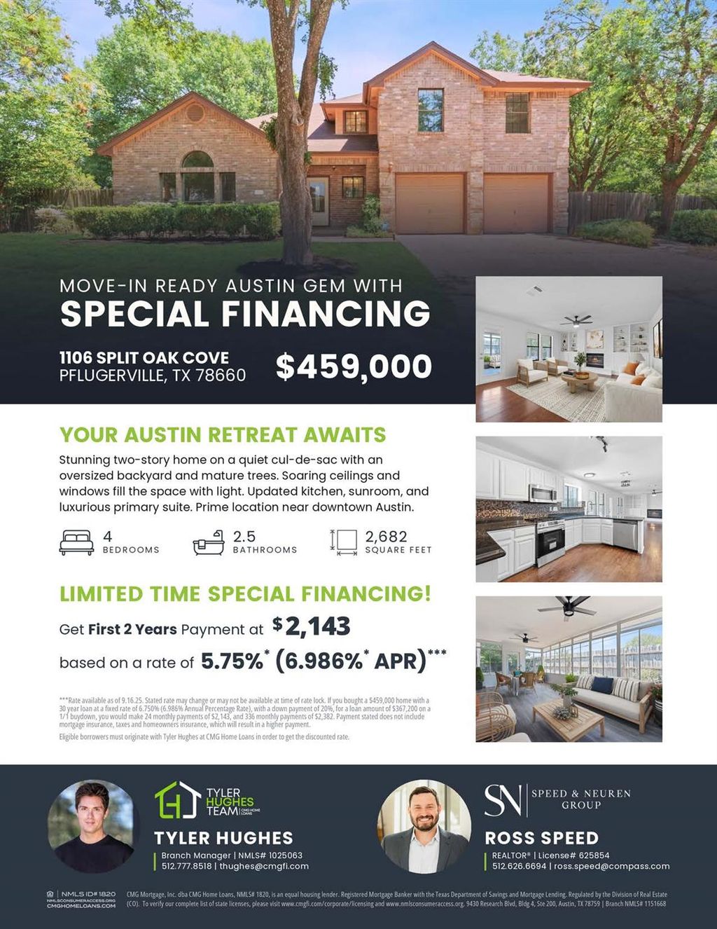 *Free 1 point rate buy down for 1 year with preferred lender* Stunning two-story home tucked away on a quiet cul-de-sac! This move-in-ready property features an oversized backyard ideal for entertaining, complete with mature trees that add beauty and shade. Inside, the home boasts soaring ceilings and walls of windows that flood the space with natural light. Recent updates include upgraded light fixtures, ceiling fans, appliances, fresh paint, new flooring, and modern hardware. The kitchen offers abundant storage with white cabinetry, stainless steel appliances, granite countertops, and a large breakfast bar. Just off the kitchen, a massive sunroom with dual ceiling fans provides the perfect spot to relax or host gatherings. The living room showcases a show-stopping fireplace framed by built-in cabinets and shelving on both sides. The primary suite has been refreshed with upgraded countertops, adding a touch of luxury. With its prime location close to downtown Austin and major employers, this home combines style, convenience, and comfort in one perfect package. For more information, go to: https://wkf.ms/40oK8Lw