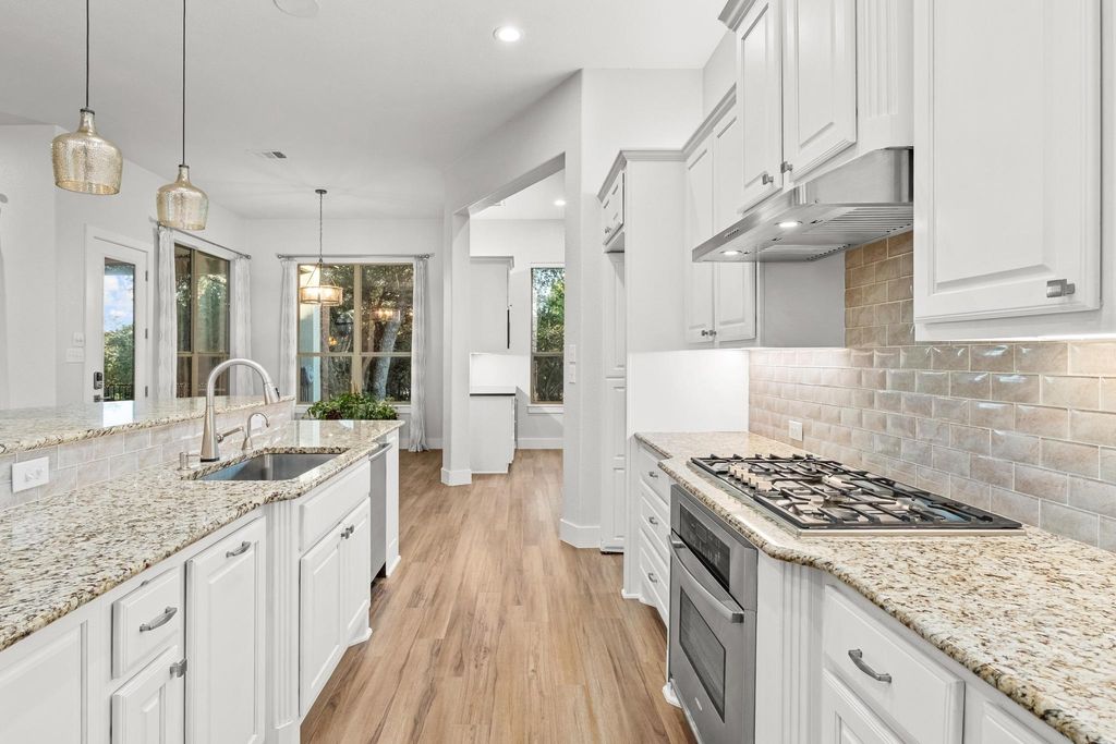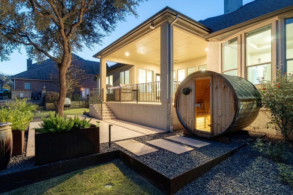 Located in the serene Lakehurst community, just minutes from Lake Travis, this updated home offers space, style and serenity on a rare double lot. The curb appeal speaks volumes, meticulously landscaped and smart, color-changing LED lights, for ambient lighting or permanent Christmas lights, conveniently controlled by Wi-FI. Inside, the home has an open layout with wide plank LVP floors, high ceilings and walls of windows framing nature's backdrop. With 4 BD, 3.5 BA, an office and a family room, there's room for everyone. The living room flows into the kitchen, anchored by a center island, SS appliances, a walk-in pantry and under-cabinet lighting. The family/game room features a dry bar with built-in wine fridge and a Miele coffee maker. An integrated Sonos & AV system creates seamless sound throughout the main living spaces, while the EERO mesh network system Wi-Fi extender keeps everything connected. The primary suite enjoys its own wing of the home, offering privacy and comfort, featuring a spacious bath and a large custom walk-in closet. On the opposite wing, you'll find the secondary rooms, including one with its own bathroom. Outback you have a true sanctuary. The patio is built for gatherings, with an outdoor kitchen and plenty of room to hang out. It looks out over a beautifully landscaped backyard where soft lighting sets the mood, a self-watering herb garden keeps things effortless, a Wi-Fi barrel dry sauna offers a quiet place to unwind, while the deep, wooded stretch of the lot beyond creates a natural buffer and a true sense of retreat. A 3-car garage and long driveway provide plenty of options for parking and storage. Zoned to Lake Travis ISD's Rough Hollow Elem. and just minutes from marinas, golf courses, great dining, and more, this location puts weekends on autopilot. From the deep-wooded lot to its carefully curated features, this home blends comfort, privacy, and character in a way that's truly special. Don't miss out!