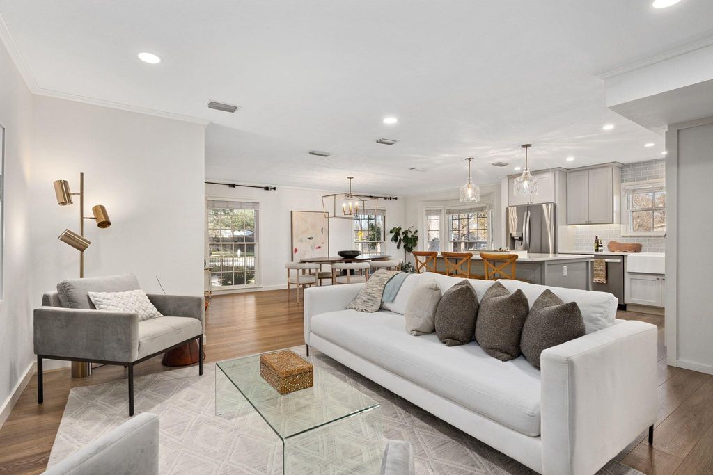 Located in the heart of Allandale, this 3BR/2BA home features two living areas, offering flexibility not often found in the neighborhood. The kitchen, family room, and dining area have been thoughtfully updated. The large kitchen island provides abundant storage and additional seating, while open sightlines to the main spaces create a cohesive feel. Multiple windows and French doors fill the home with natural light. The bedroom wing and second living area can be closed off from the main living spaces, providing an ideal layout for both work and play. The home offers ample storage with built-ins and an air-conditioned storage room located in the garage. Recent improvements include a new roof, gutters, HVAC unit, water heater, and dishwasher. The backyard features low-maintenance turf, while the fully fenced front yard is shaded by mature trees and landscaping. Located in a highly walkable neighborhood near Northwest Park, Northwest Little League fields, and Gullett Elementary.