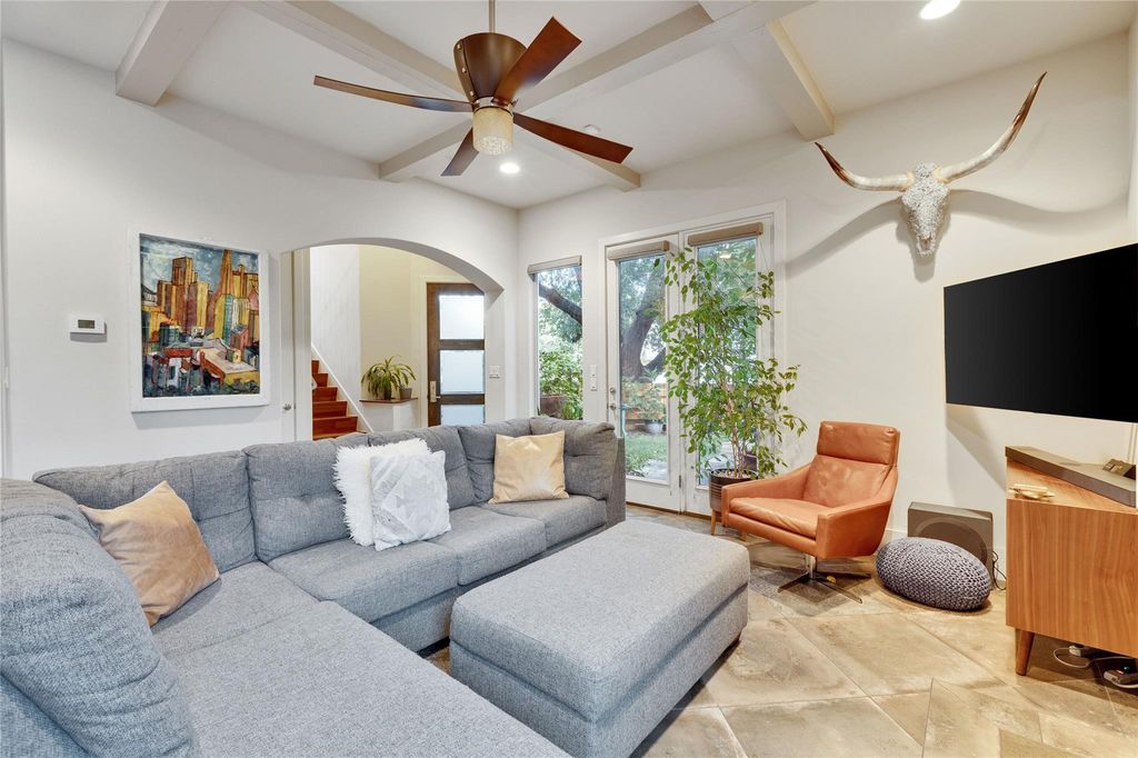 The Ultimate SoLa Lifestyle: Rooftop Views, Walkability & A Tesla Charger! Looking for everything 78704 has to offer? Welcome to a remarkable Austin townhome that checks every box! Situated in Kinney Oaks, this 3-bed, 3.5-bath home delivers the South Lamar location you crave, the amenities you'll actually use, and the value you've been searching for. Step inside and discover a gorgeous entertainer's dream. The open-concept main floor features an accented tile fireplace, beamed ceilings, and a high-end kitchen with professional grade stainless steel appliances. Every bedroom is an ensuite with a private bathroom, offering ultimate comfort for family and guests. The primary suite is a true retreat with its own fireplace and spacious walk-in closet. Love the outdoors? Enjoy two fenced courtyards, a private primary balcony, AND a spiral staircase leading to a rooftop patio with stunning downtown views. Keep your ride safe and ready to go - the 2-car garage is equipped with a Tesla charger and Powershare capability (Cybertruck fits garage and powers home for two days). Prime Location! Walk to Loro and enjoy a 5-minute drive to Zilker, Barton Springs, SoCo, and downtown. This is a rare opportunity for you to enjoy downtown views and an A+ location with zero compromises on amenities!