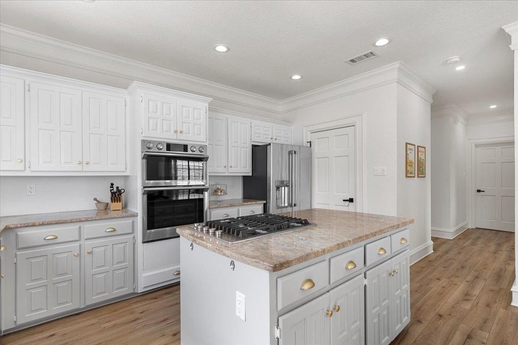 INTERIOR | Bookcases, Breakfast Bar, Built-in Features, Ceiling Fan(s), Chandelier, Crown Molding, Double Vanity, Eat-in Kitchen, Entrance Foyer, Granite Counters, Kitchen Island, Master Downstairs, Natural Woodwork, Pantry, Soaking Tub, Storage, Walk-In Closet(s) |