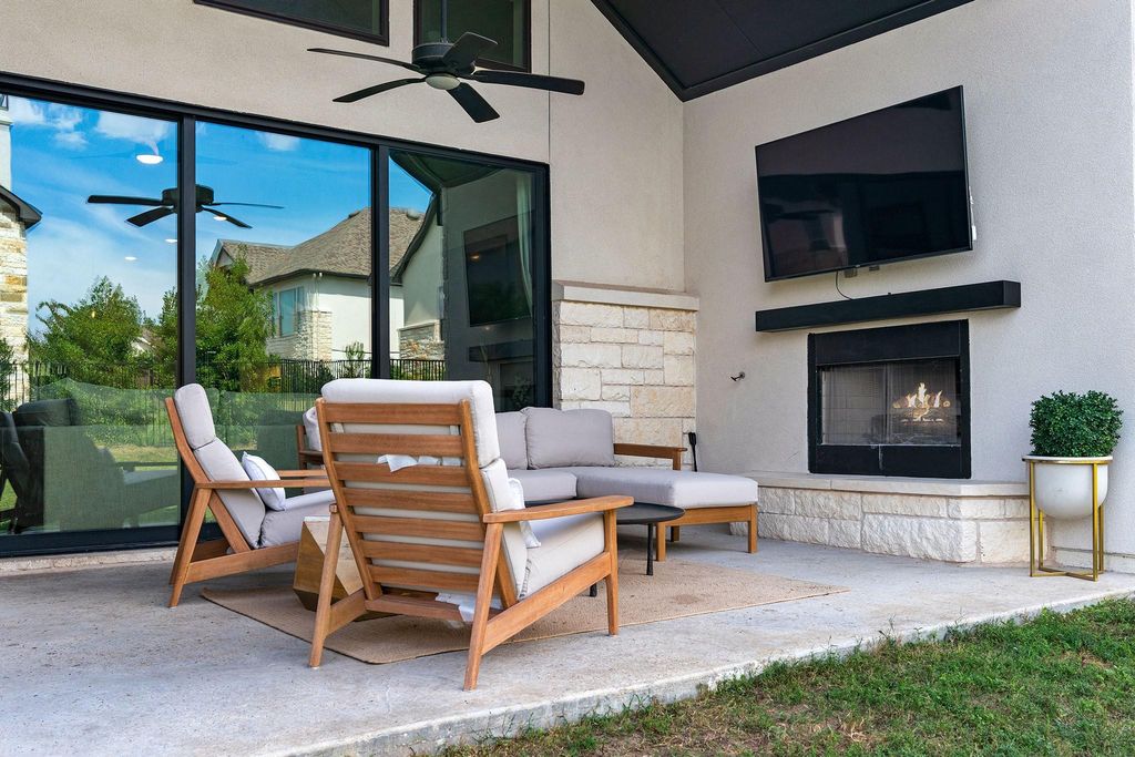 Welcome to this beautifully upgraded 4-bedroom, 3-bath home, perfectly situated just a short walk from the neighborhood elementary school. Step inside to discover a thoughtfully designed open-concept floor plan filled with natural light, soaring ceilings, and elegant high-end finishes throughout. The gourmet kitchen is a true showstopper, featuring premium KitchenAid stainless steel appliances, a commercial-style gas cooktop, and upscale details that make everyday cooking feel like a culinary experience. Designed with both relaxation and entertaining in mind, the spacious living and dining areas flow seamlessly together, creating an inviting atmosphere for gatherings large or small. A private study provides a quiet, flexible space"”perfect for working from home or pursuing hobbies. Outside, enjoy a fully fenced, step-free backyard. With a fireplace and seating"”ideal for entertaining, play, or simply unwinding in your own private oasis. Located in the highly sought-after Rough Hollow community, you'll have access to resort-style amenities including pools, parks, scenic hiking and biking trails, and lakeside adventures"”all just minutes from your door. This home offers the perfect balance of style, comfort, and unbeatable location. Set within the amenity-rich Rough Hollow community, enjoy access to pools, parks, scenic trails, and lakeside activities"”all right at your doorstep. This home combines style, function, and an unbeatable location"”ready to welcome you home. Preferred Lender Financing Opportunity! Save an average of $5,800 in your first 12 months! This special incentive allows you to enjoy a lower interest rate for the first year of your loan, reducing your monthly payment and giving you breathing room as you settle into your new home. Savings estimate based on current market rates and typical loan amounts; actual savings will vary based on buyer's loan terms. Reach out to Brittanie with Park 65 Lending for additional questions!