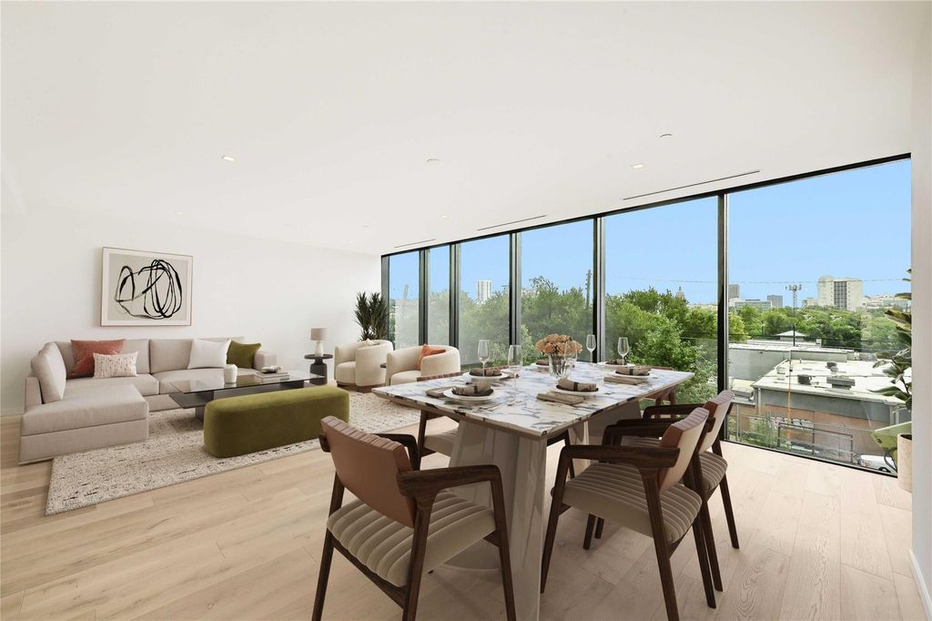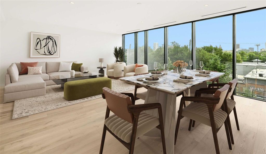 The Colorfield is a collection of 10 residences featuring oversized floor plans with high-quality finishes that will deliver residents an unrivaled Austin lifestyle while living steps from Downtown. Every detail of these spectacular living spaces is meticulously crafted with modern, high-end finishes to provide a residential experience like no other. Unit 202 features three spacious bedrooms, three full bathrooms and one half bathroom. The open floorplan begins with an entry foyer and den or flex space. Take in the unmatched skyline views of downtown Austin from the formal living and dining rooms and private covered terrace. The chef's kitchen features high-end and sleek selections like polished nickel fixtures, stainless-steel appliances by Bosch and Gaggenau, and a full-size wine refrigerator. The design scheme throughout is light and bright with natural wood cabinetry and intricate mosaic accent tile. Located at the edge of Clarksville, The Colorfield is a walkable community that connects residents to the pulse of downtown living. Enjoy easy access to premium shopping, dining, and entertainment"”all from a residential jewel beckoning to those who savor private and elevated living. Project is currently under construction and is expected to be completed in 2025. Closing credits include $25,000 toward primary closet build-out and $15,000 toward shades. Tax and assessed values are estimates for illustration purposes only. All figures should be independently verified. Some images are virtually staged for visualization and may not reflect the actual appearance or condition of the property.