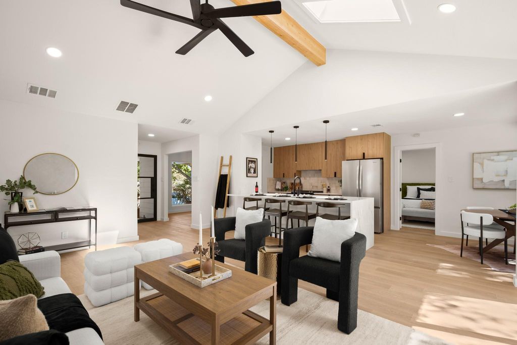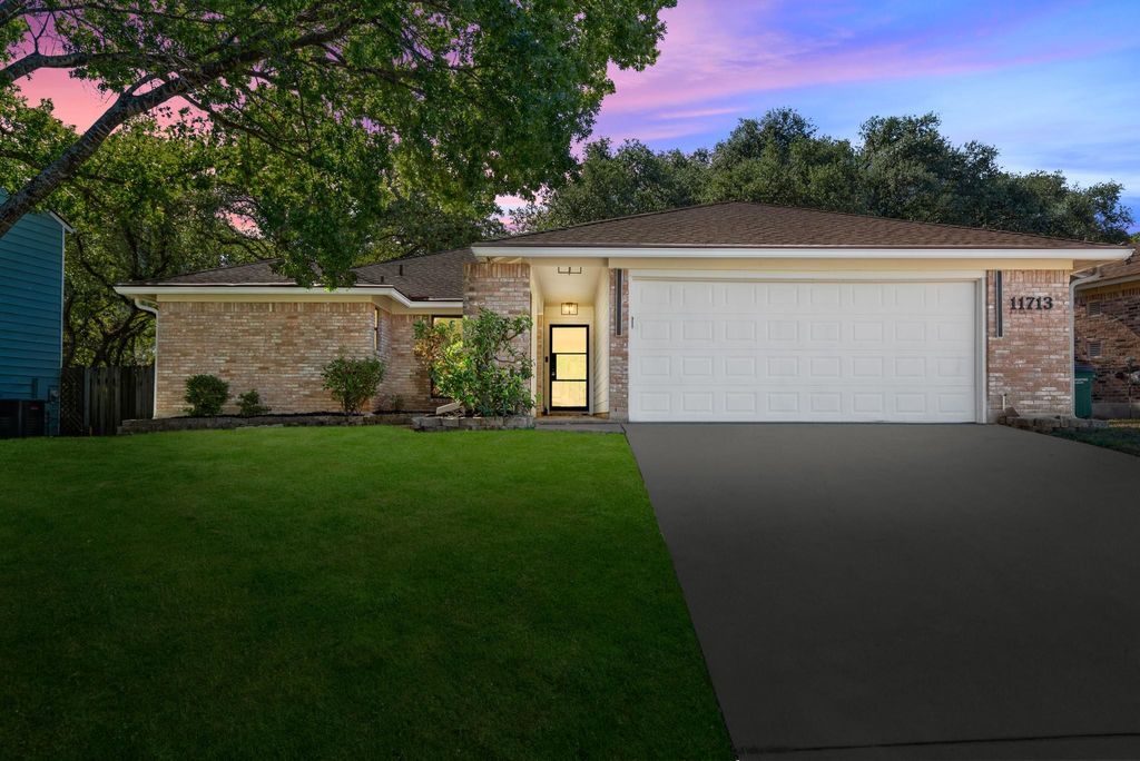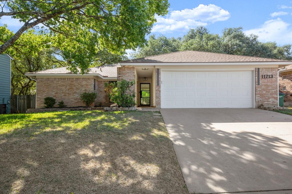 A gorgeous, remodeled home with designer finishes, an open & split floor plan, and pleasant natural light on a lush lot with superb curb appeal! The kitchen boasts a waterfall island and breakfast bar, European style custom cabinets, a built in microwave, farm sink, Refrigerator, gas range, and multiple dining areas. The living area has high ceilings with sky lights, a wood beam, ceiling fan, and the plastered fireplace wall as the focal point. The oversized primary suite offers endless possibilities while the show-stopping ensuite has a frameless glass walk in shower, dual vanities, storage shelves, a water closet, and his & her walk in closets. The secondary bath is anything but ordinary with a pop of wallpaper, oversized storage area, designer tile, and a floating vanity. New HVAC, picture windows/sliding door/iron front door, gas water heater, stainless steel appliances, recent Roof, and luxury vinyl flooring throughout to name a few. A stable location in Gracywoods subdivision and zoned to Pflugerville ISD. Welcome Home!