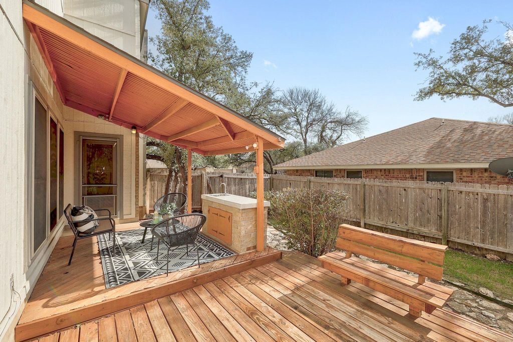 Welcome to 12020 Carmel Park Lane, a thoughtfully updated 3-bedroom, 2-bath custom home offering 1,348 square feet of well-designed living space, tucked away on a quiet cul-de-sac in an established Milwood neighborhood. Zoned to highly acclaimed schools including Summitt Elementary, Murchison Middle, and Anderson High School. Built in 1980 and situated on a .208-acre lot, this home has undergone extensive upgrades. Improvements include fresh interior and exterior paint, roof replacement, an updated HVAC system relocated to the attic for quieter and more efficient operation, replaced ductwork, hot water heater, windows, irrigation control panel, light fixtures, and an upgraded electrical breaker box. Interior enhancements feature crown molding in the kitchen and primary bedroom, recessed lighting, and quality finishes throughout. The kitchen is both functional and stylish, showcasing Italian tile flooring, high-grade granite countertops, solid wood cherry cabinetry, and stainless-steel appliances. The living area is highlighted by a dramatic floor-to-ceiling brick fireplace, vaulted cascading ceilings, and clerestory pocket windows that fill the space with natural light. The primary suite offers a walk-in closet, granite countertops with dual undermount sinks, and an oversized walk-in shower with floor-to-ceiling tile, creating a spa-like retreat. Step outside to a covered back porch complete with a custom bar and outdoor sink"”ideal for entertaining or dining al fresco. The backyard is shaded by mature oak trees, providing a private, park-like setting rarely found at this price point. With meaningful upgrades, excellent schools, and inviting indoor-outdoor living, 12020 Carmel Park Lane is a standout opportunity you won't want to miss!