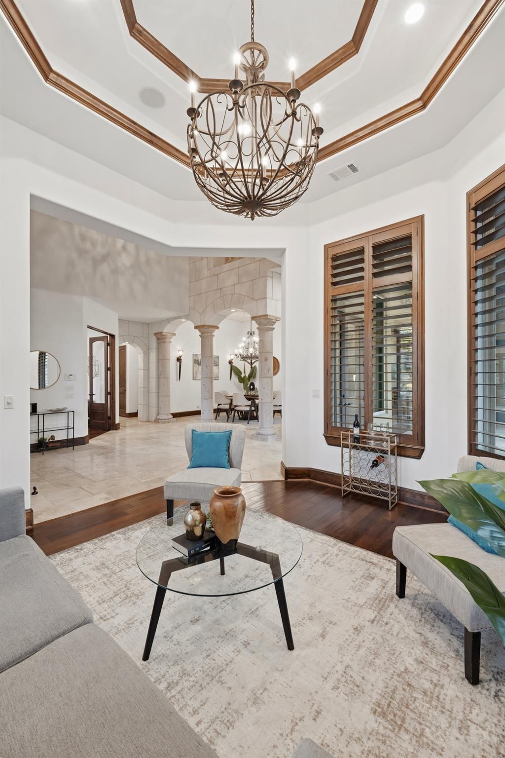 | INTERIOR | Bar, Beamed Ceilings, Breakfast Bar, Built-in Features, Ceiling Fan(s), Chandelier, Crown Molding, Double Vanity, Elevator, Entrance Foyer, Granite Counters, High Speed Internet, Kitchen Island, Master Downstairs, Pantry, Recessed Lighting, Stone Counters, Track Lighting, Walk-In Closet(s), Wet Bar, Wired for Sound |