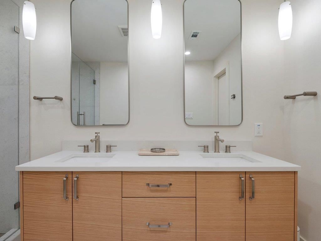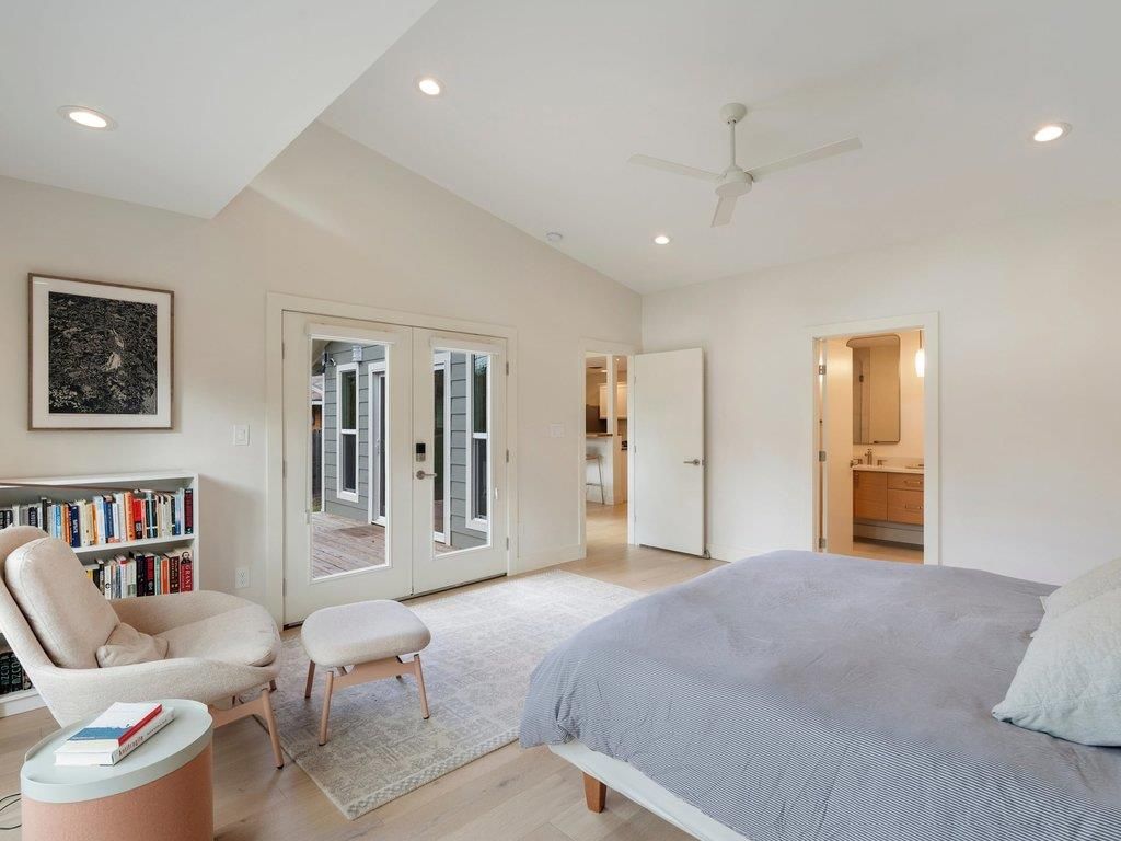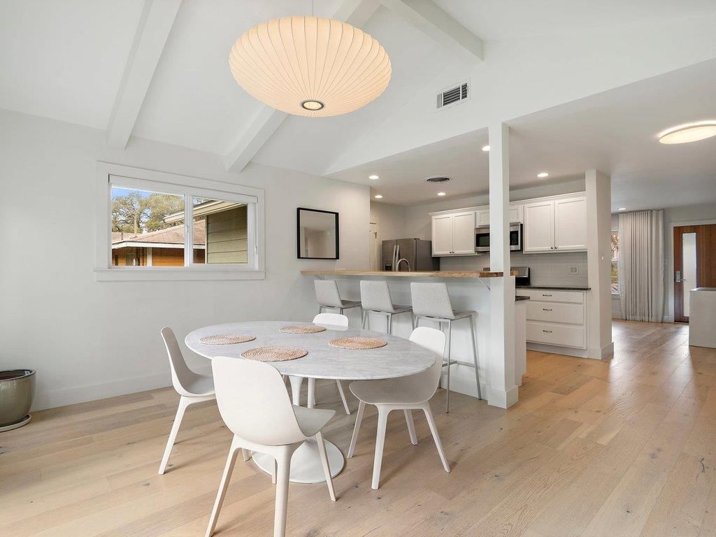 Tucked against a lush greenbelt in South Austin, 5026 Lansing Drive offers a rare blend of privacy, natural beauty, and thoughtful modern design. Deer sightings, mature agaves, wildflowers, trumpet vines, and a welcoming pomegranate tree create a true indoor outdoor lifestyle, anchored by a spacious deck overlooking the backyard and greenbelt. Set within an established neighborhood known for its dense urban canopy and everyday street life, the home feels both connected and quietly removed. Inside, warm white oak flooring runs throughout, grounding the home in a cohesive, modern aesthetic. The main living area is light filled and oriented toward the backyard, with large windows from a recent addition drawing in greenbelt views and abundant natural light. The kitchen balances clean functionality with organic detail, featuring a Japandi inspired live edge wood countertop and bar that adds warmth while remaining visually connected to the living and dining spaces. The primary suite, located in the new addition, opens directly to the deck through French doors allowing the outdoors to become an extension of the bedroom. A custom spa-like bathroom and a thoughtfully designed walk-in closet with a built-in work nook elevate everyday living. The flexible 4 bedroom, 3 bath layout provides privacy and versatility, supporting both shared moments and quiet retreat. Out back, the expansive deck overlooks the greenbelt, creating a peaceful setting for daily life and entertaining. The garage includes a mini-split system, offering year-round comfort for use as a gym, studio, or flexible bonus space. This home delivers a rare combination of nature, design, and neighborhood connection while remaining close to everything South Austin has to offer.