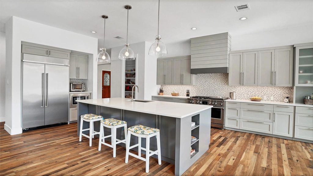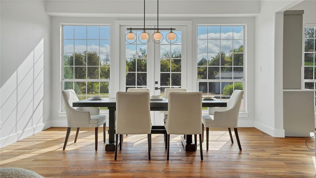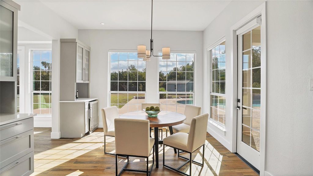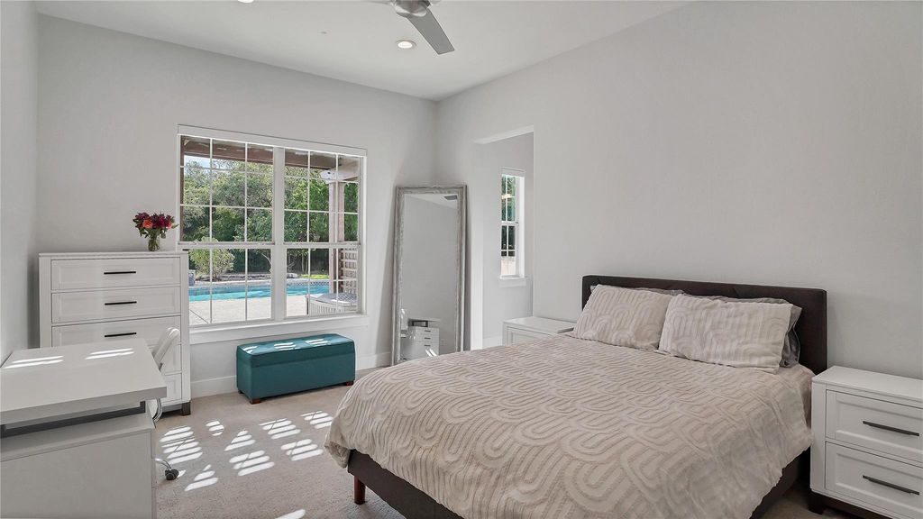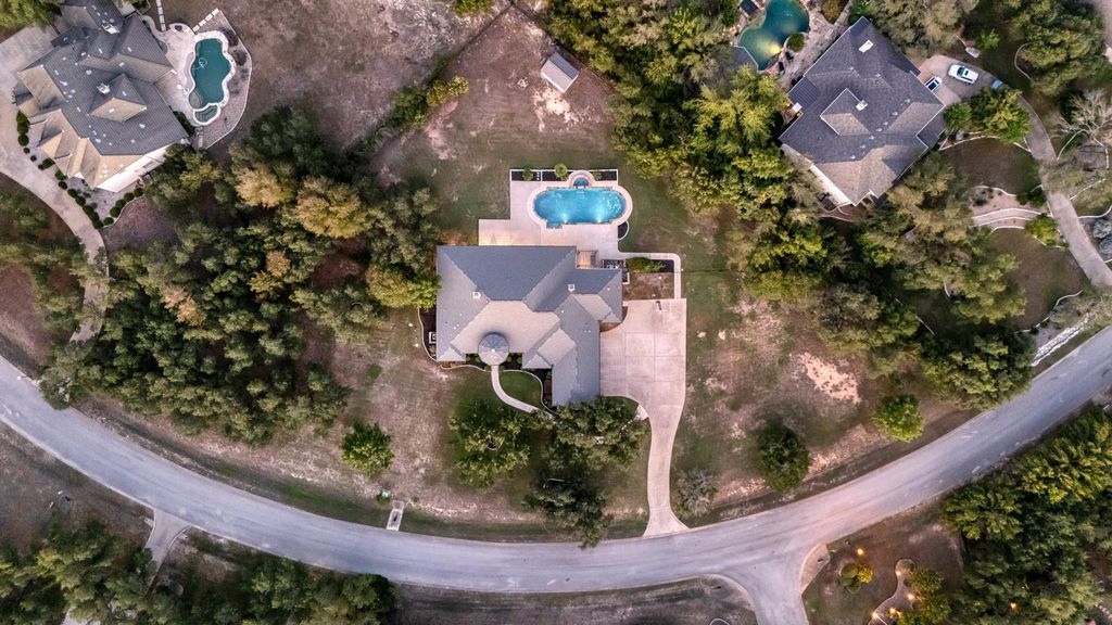 Welcome to this gorgeous estate situated on a flat, 1.63-acre lot in the heart of Lakeway and zoned for highly acclaimed Lake Travis ISD, this single-story residence has been exquisitely renovated to combine modern elegance with timeless Texas charm. Offering 4,170 square feet of refined living, the home showcases a seamless balance between design, function, and comfort. Step inside to an expansive open layout featuring two spacious living areas and two dining spaces, ideal for both family living and entertaining. The gourmet kitchen stands as the centerpiece, boasting a 9-foot custom island, high-end Fisher & Paykel appliances (2021), custom cabinetry, and a recently installed wine refrigerator"”all designed for the modern chef and entertainer. The primary suite was expanded by approximately 400 square feet of HVAC-conditioned space, adding a tranquil sitting area, bonus room, and a spa-inspired bathroom. Throughout the home, elegant hardwood flooring, updated lighting, and squared interior arches bring a sophisticated aesthetic. Additional highlights include a renovated Jack-and-Jill bathroom, recently replaced carpet in secondary bedrooms, and fresh, custom cabinetry throughout. The property's updates continue outdoors with a roof replacement (2020), new gutters, front shutters, and a grandfathered shed offering versatile storage or workspace. Enjoy resort-style living with a sparkling pool and spa, accessible through double patio doors from the family room"”perfect for hosting gatherings or relaxing in privacy. Security and peace of mind are ensured with a Granite Security system featuring seven exterior cameras and an interior alarm system. Every element of this property has been thoughtfully curated, creating a contemporary home that is as functional as it is beautiful"”this estate delivers the best of Lake Travis living in a premier location.