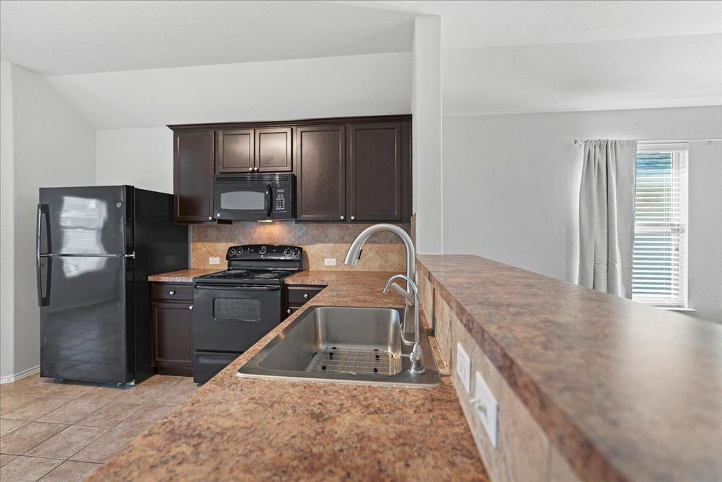 Open-concept single-story in Westwind with high ceilings and great natural light. The eat-in kitchen offers a breakfast bar and flows into the living room for easy everyday living. The spacious private suite features a dual-vanity bath with separate shower and garden tub plus a walk-in closet. Two secondary bedrooms share a full hall bath. Outside, enjoy a fenced backyard, covered porch, and patio; 2-car garage with front-facing driveway. Community park nearby; Elgin ISD. Located in the "Sausage Capital of Texas," you're never far from Elgin's famous barbecue heritage. Great option for first-time buyers, with an assumable VA loan available to qualified buyers.