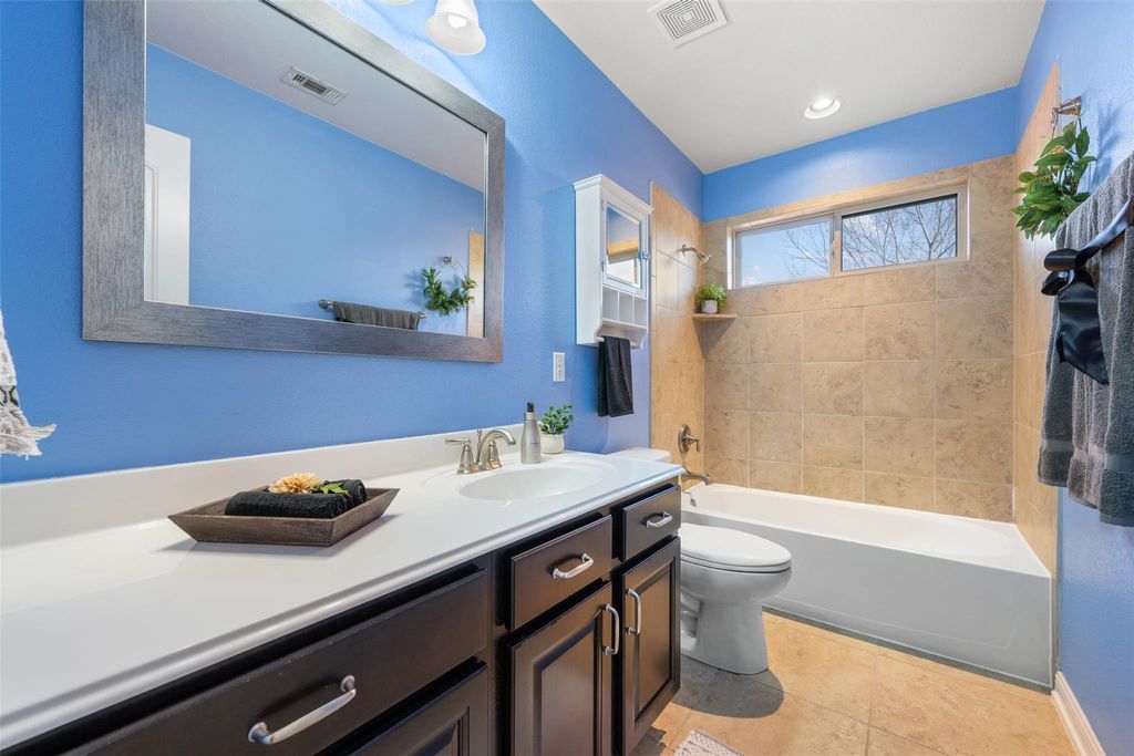 Welcome home to this beautifully maintained one-story residence in the desirable Falcon Pointe community of Pflugerville. This well-designed home offers 4 bedrooms, and 2 full baths. The versatile 4th bedroom works perfectly as an optional media space, home office, or playroom. The primary bedroom is spacious for a king bedroom suite and offers dual walk in closets for plenty of space to hang your wardrobe. Within the primary bedroom is a luxury bathroom featuring a garden bathtub, a separate shower, and two vanities. This open-concept floor plan features a spacious living room anchored by a cozy fireplace, ideal for entertaining or relaxing. The kitchen is both stylish and functional with a center island, granite countertops, gas cooktop, and a refrigerator, all overlooking the main living area. A rare 3-car garage with epoxy flooring adds exceptional storage and a polished finish. Inside the garage you will also find two garage door openers and a water softener system. Outside, enjoy a fully fenced yard with mature trees and shrubs in both the front and back, along with an irrigation system for easy care and year-round curb appeal. Conveniently located near Toll Roads 45 and 130, this home offers an easy commute to Austin-Bergstrom International Airport and downtown Austin. Just minutes away is major shopping and dining, including Costco and an expansive retail corridor filled with popular stores and restaurants. Zoned to Pflugerville ISD, this home combines comfort, flexibility, and an unbeatable location.