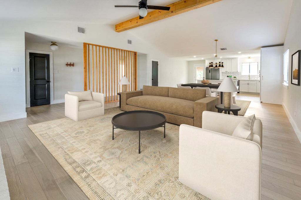 INTERIOR | Beamed Ceilings, Breakfast Bar, Ceiling Fan(s), Double Vanity, High Ceilings, Kitchen Island, Master Downstairs, Natural Woodwork, Open Floorplan, Stone Counters, Vaulted Ceiling(s), Walk-In Closet(s) |