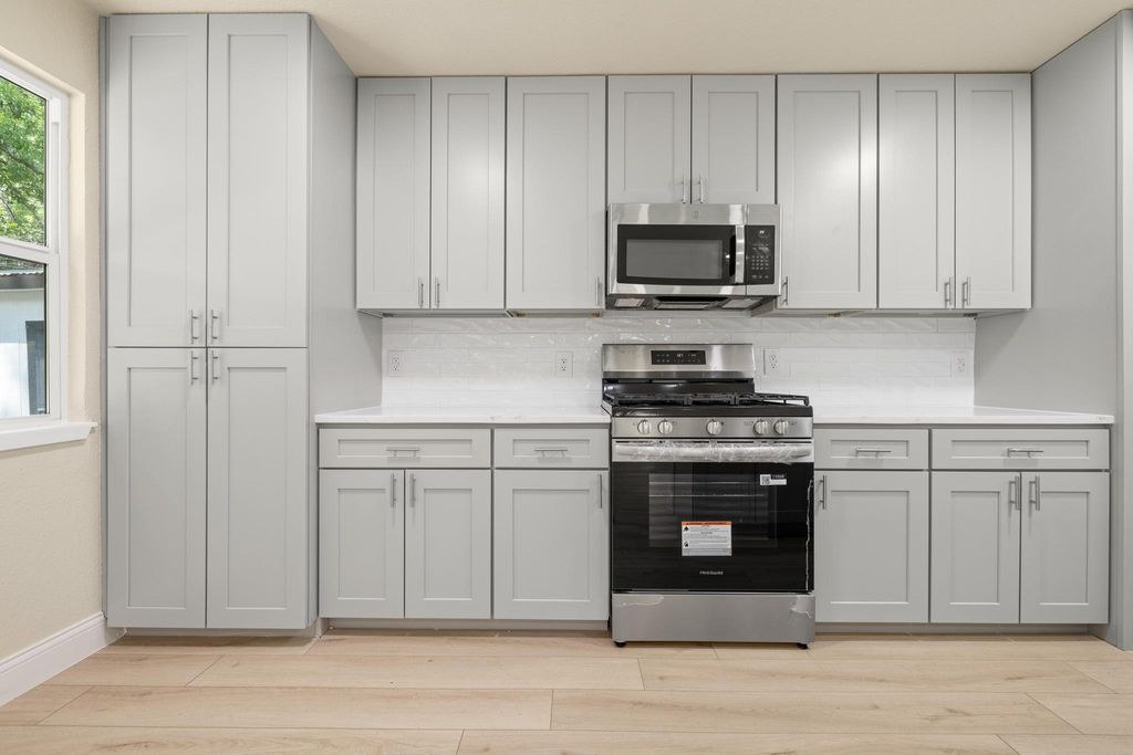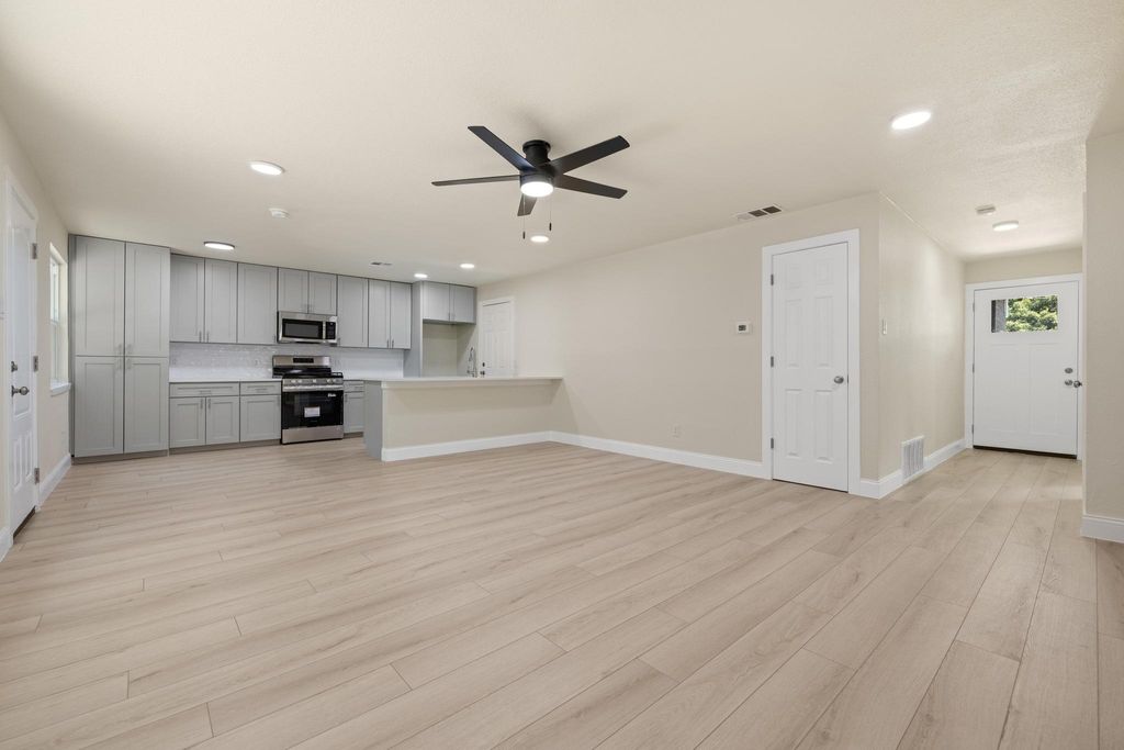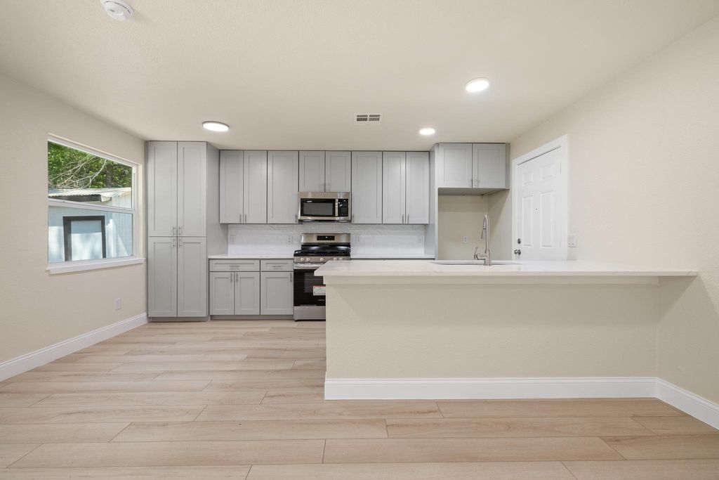 Welcome to this beautifully remodeled home, offering 1,062 sq. ft. of stylish updates and move-in ready comfort. Every corner has been refreshed to create a cozy yet open feel that's perfect for modern living. Step inside and enjoy a bright, open floor plan with a brand-new kitchen featuring updated countertops, cabinetry, and appliances. The spacious living area flows seamlessly, making it ideal for entertaining or relaxing at home. Freshly retextured and repainted walls, new flooring, and updated light and bath fixtures give the entire house a clean, modern look. Major upgrades have already been done for you: a brand-new roof, full interior and exterior paint, and new garage door openers for convenience and peace of mind. Outside, a newly installed six-foot picket fence creates privacy and curb appeal, while the backyard offers space to enjoy the outdoors. In addition, there's a shed in the backyard already equipped with electricity, lighting, and an outlet. While it isn't fully finished, it offers plenty of potential; perfect as a future home office, hobby room, or extra storage space with a little customization. This home blends charm with practicality; new fixtures, new finishes, and thoughtful details throughout mean you can move right in without lifting a finger. Whether you're looking for your first home, downsizing, or investing in a turnkey property, this remodeled gem checks every box.