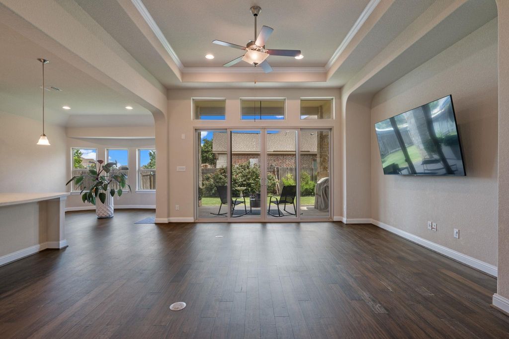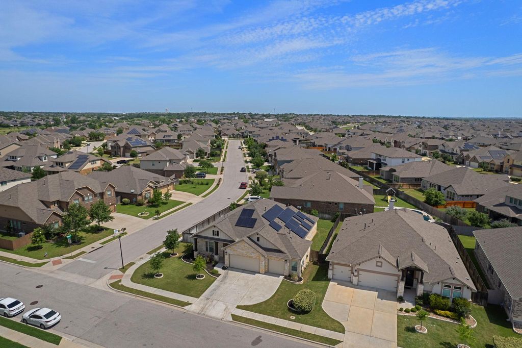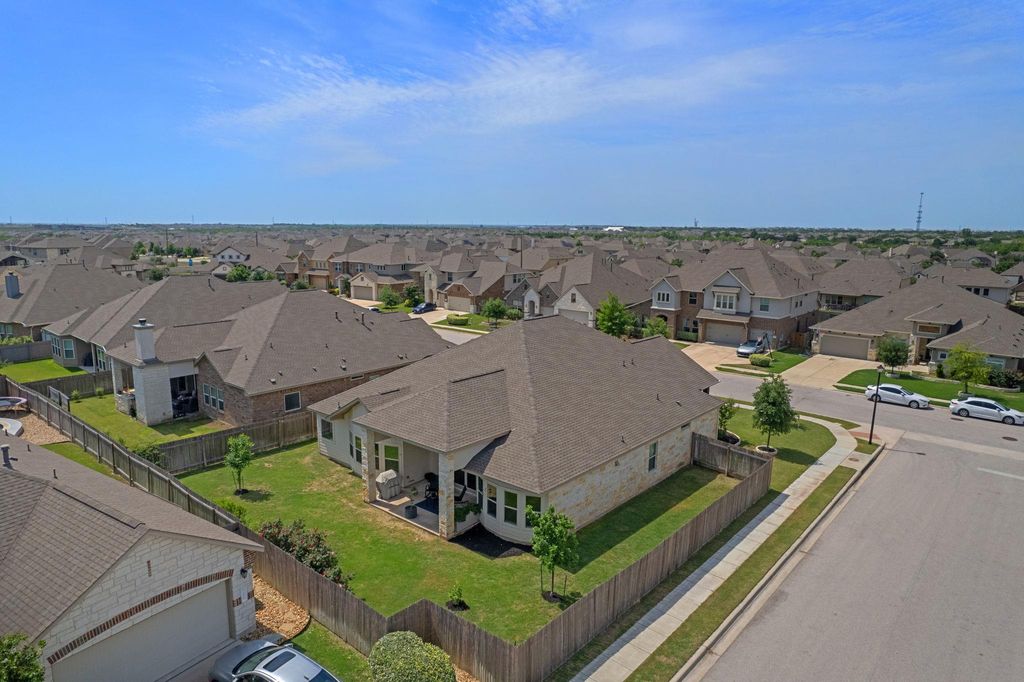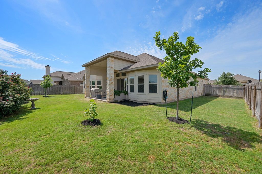 Corner Lot in Lakeside at Blackhawk! This 4-bedroom, 3-bathroom home sits on a corner lot in the desirable Lakeside at Blackhawk community. With 2,599 sq ft of living space, the floor plan blends everyday comfort with thoughtful upgrades. The main living area features crown molding, a tray ceiling, and sliding glass doors that open to a covered patio for effortless indoor-outdoor living. The kitchen includes stainless steel appliances, a large island, a walk-in pantry, and abundant cabinet storage. A private office with French doors offers a dedicated workspace. The primary suite boasts vaulted ceilings, dual vanities, a walk-in shower, a soaking tub, and an oversized closet. Additional features include solar panels, a water softener, and a 3-car garage. Community amenities include a clubhouse, pool, golf course, tennis courts, playground, and walking trails. Conveniently located near TX-130, H-E-B, Costco, and Stone Hill Town Center. Schedule your showing today!