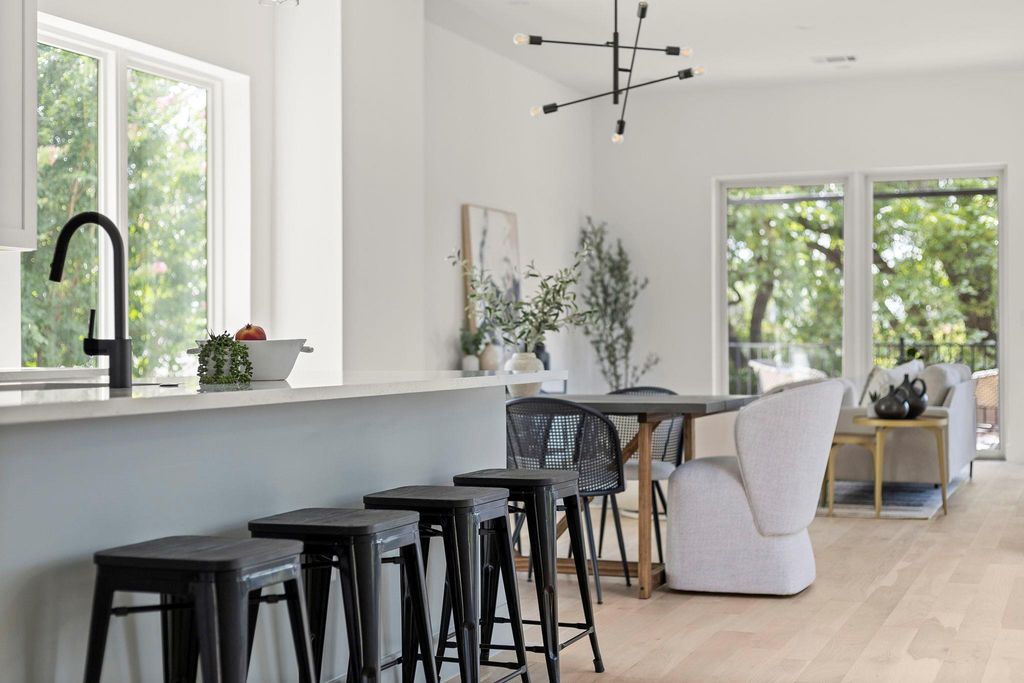 Modern, bright, and exceptionally located, this luxury 4-bedroom, 4.5-bath home offers over 2,400 square feet of high-end living space in one of Austin's most sought-after central neighborhoods. Built in 2023, the smart layout includes one bedroom with a private bath on the main floor and three bedrooms upstairs, each with their own en-suite bathrooms, plus a half bath downstairs. A covered carport provides convenient off-street parking. Inside, you're welcomed by tall ceilings, grand windows, and a wide-open floorplan that feels both spacious and functional. The chef's kitchen is designed to impress, featuring a massive center island, quartz counters, a wine fridge, and a built-in wine nook. Wood stairs lead you through elegant touches like a built-in shoe and storage bench at the front entry, motorized shades, and a seamless flow between indoor and outdoor spaces. Step outside to enjoy a wraparound covered patio overlooking your private pool"”a perfect setup for entertaining or relaxing in the shade. The low-maintenance turf front yard keeps the curb appeal high without the upkeep. Upstairs, the primary suite is a peaceful retreat with a walk-in shower and large windows with views of the Hill Country. A flex space upstairs adds room for a second living area, office, or media setup. Located just minutes from Zilker Park, Ladybird Lake, Lake Austin, and Downtown Austin, this home offers unbeatable proximity to local favorites like Hula Hut, The Domain, Q2 Stadium, and top employers like Indeed, UT, and Tesla. Quick access to MOPAC/Loop 1 means commuting is easy, yet you're tucked into a beautiful, tree-lined neighborhood known for its character and charm. This is a rare opportunity to own a modern, turn-key home with thoughtful design, luxury finishes, and prime access to the best of Austin. Buyers to verify all information.