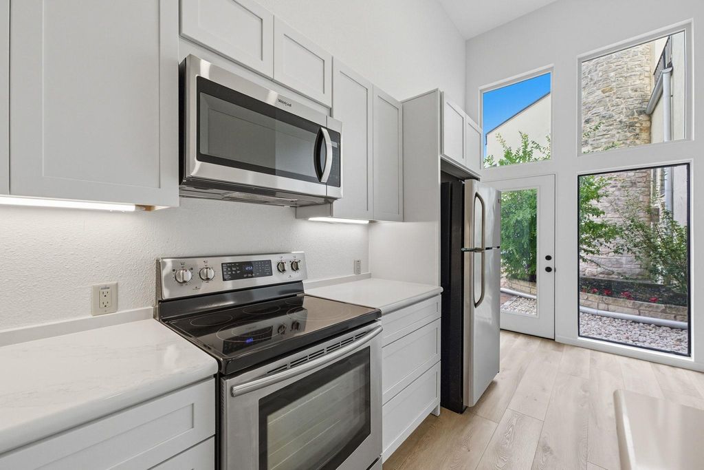 | APPLIANCES | Dishwasher, Disposal, Dryer, Electric Range, Electric Water Heater, Exhaust Fan, Free-Standing Electric Range, Microwave, Refrigerator, Self Cleaning Oven, Stainless Steel Appliance(s), Washer/Dryer Stacked |