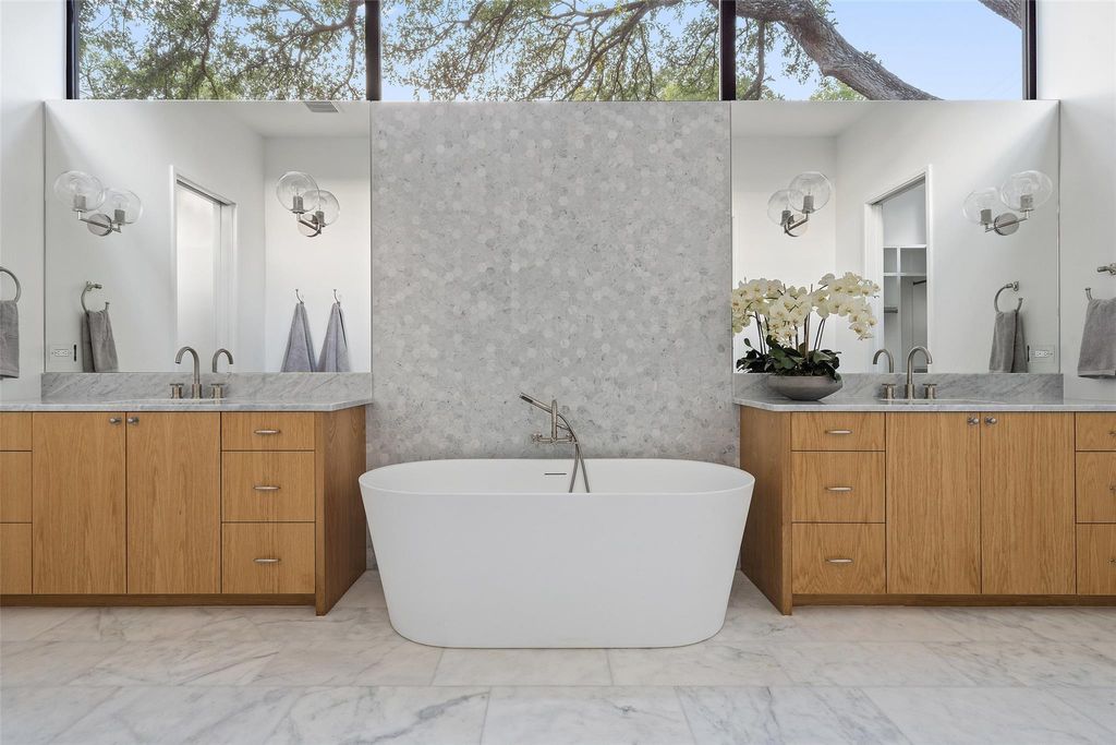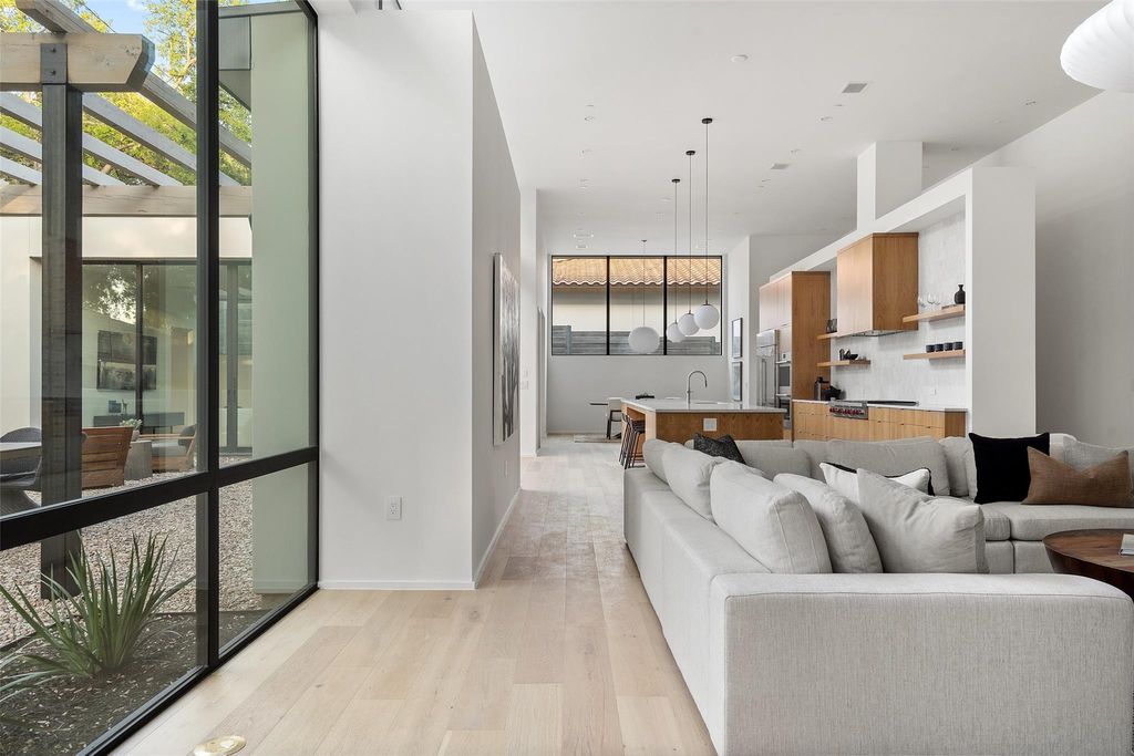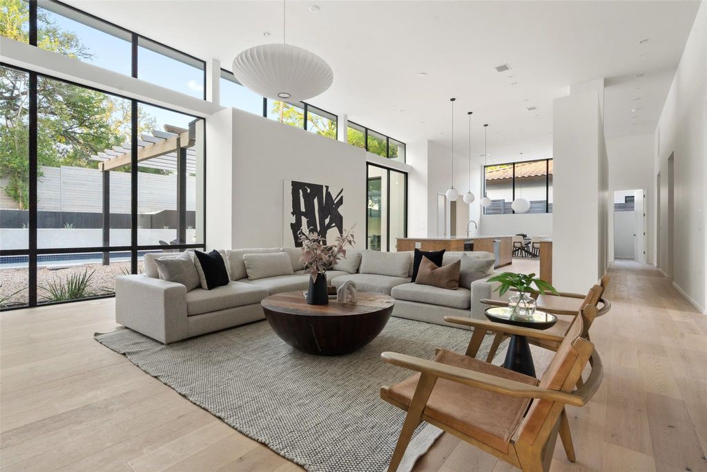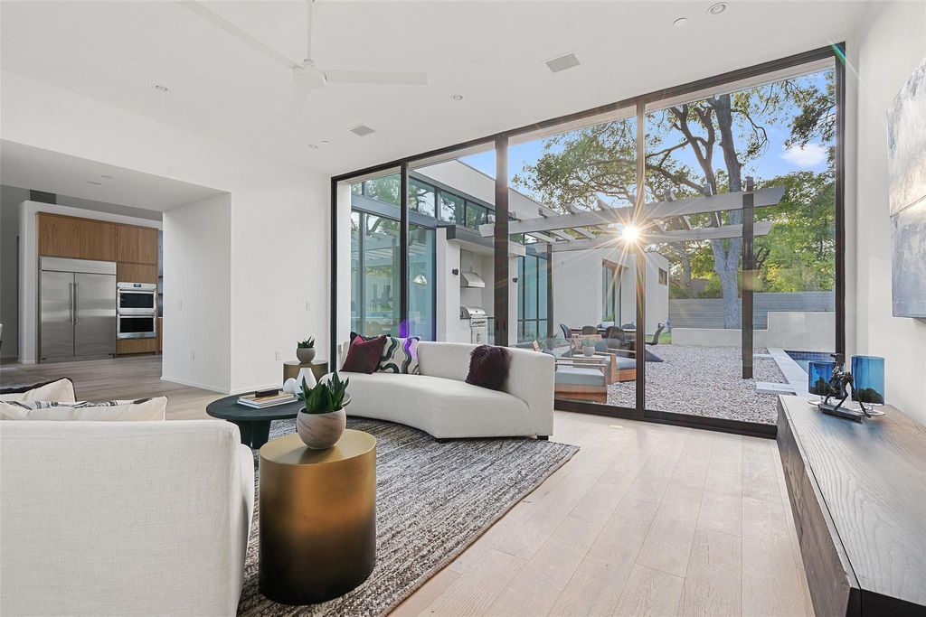 Introducing a breathtaking new construction estate by visionary architect Patrick Ousey of FAB Architecture- an inspired one-story contemporary residence that redefines refined living in central Austin's most coveted neighborhood, Tarrytown, zoned to & steps away from the highly rated Casis Elementary (10/10 on Greatschools). Set on a rare 13,037 sq.ft. lot, this architectural gem seamlessly blends warm modernism with functional elegance, delivering a private sanctuary. Encompassing approximately 4,665 sqft, the home unfolds with curated intention every detail tailored for elevated everyday living. Walls of glass bathe the interiors in natural light, drawing the eye to clean architectural lines, layered textures, & an effortless indoor-outdoor connection. The open-concept floor plan is anchored by soaring 14-ft ceilings in the living & kitchen areas, where an exquisite chef's kitchen outfitted with Wolf & Monogram appliances flows into the family room, an entertainer's dream. The primary suite is a true retreat, tucked away with serene views & private access to the backyard oasis. Its spa-like bath features a freestanding soaking tub, dual vanities, walk-in shower, & dual walk-in closets one of which connects seamlessly to the laundry for ultimate convenience. A second private suite, ideally positioned for in-laws or guests, overlooks the pool, while three additional bedrooms (or optional office) complete this thoughtful layout. Outside the backyard evokes Palm Springs vibes with a terraced backyard secluded from neighbors offering a rare sense of privacy & calm. The extra-large centrally located pool becomes the centerpiece for your elevated backyard gatherings with a sprawling lawn, pergola, & outdoor kitchen with grill & fridge. All info deemed reliable but not guaranteed. Buyer to independently verify all info including but not limited to sqft, taxes, schools, lot size, restrictions, etc. Some light fixtures are current tenant's. Lease ends Feb 28, 2026.